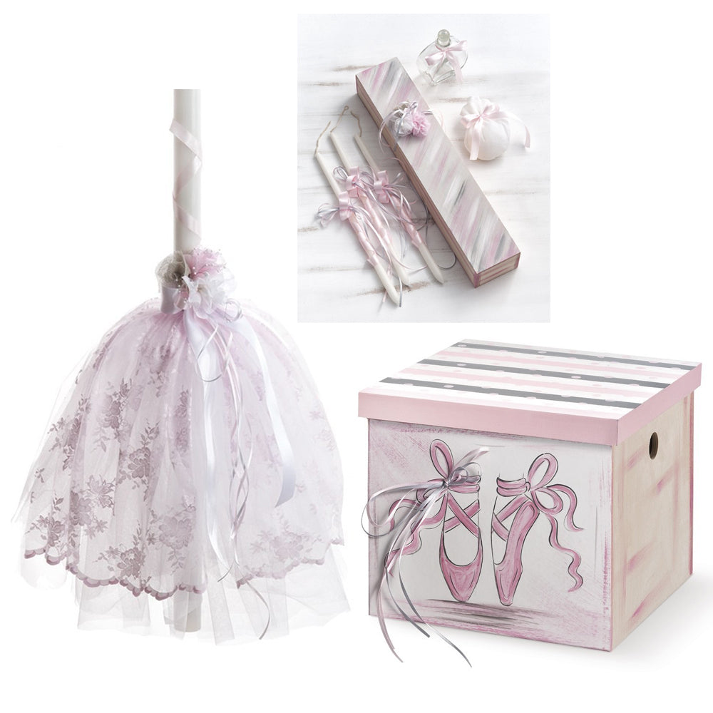 Χειροποίητο Σετ Βαπτιστικών για κορίτσι, με Pouent Μπαλαρίνα.