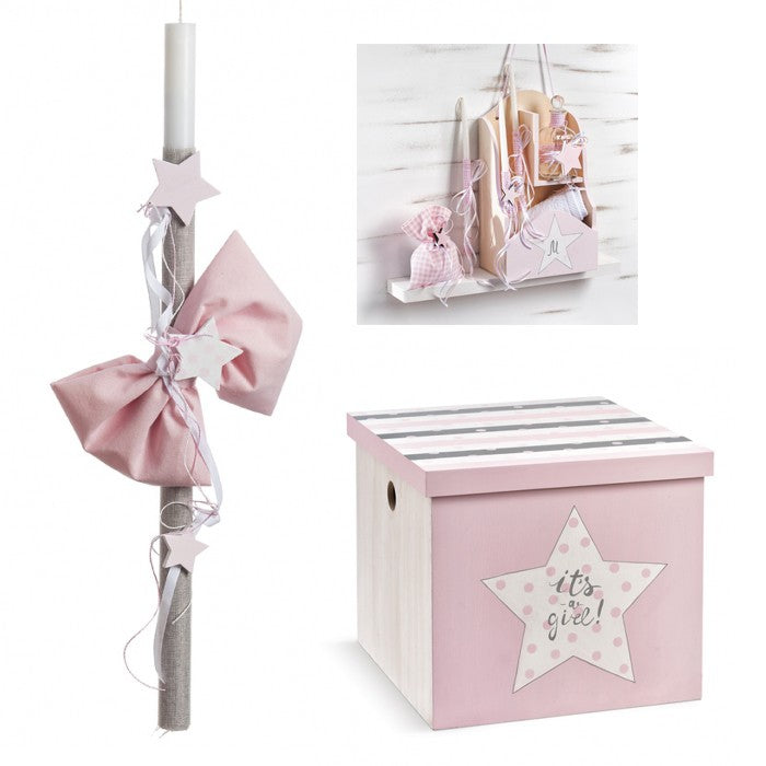 Χειροποίητο Σετ βαπτιστικών, για κορίτσι με αστέρι, ροζ.