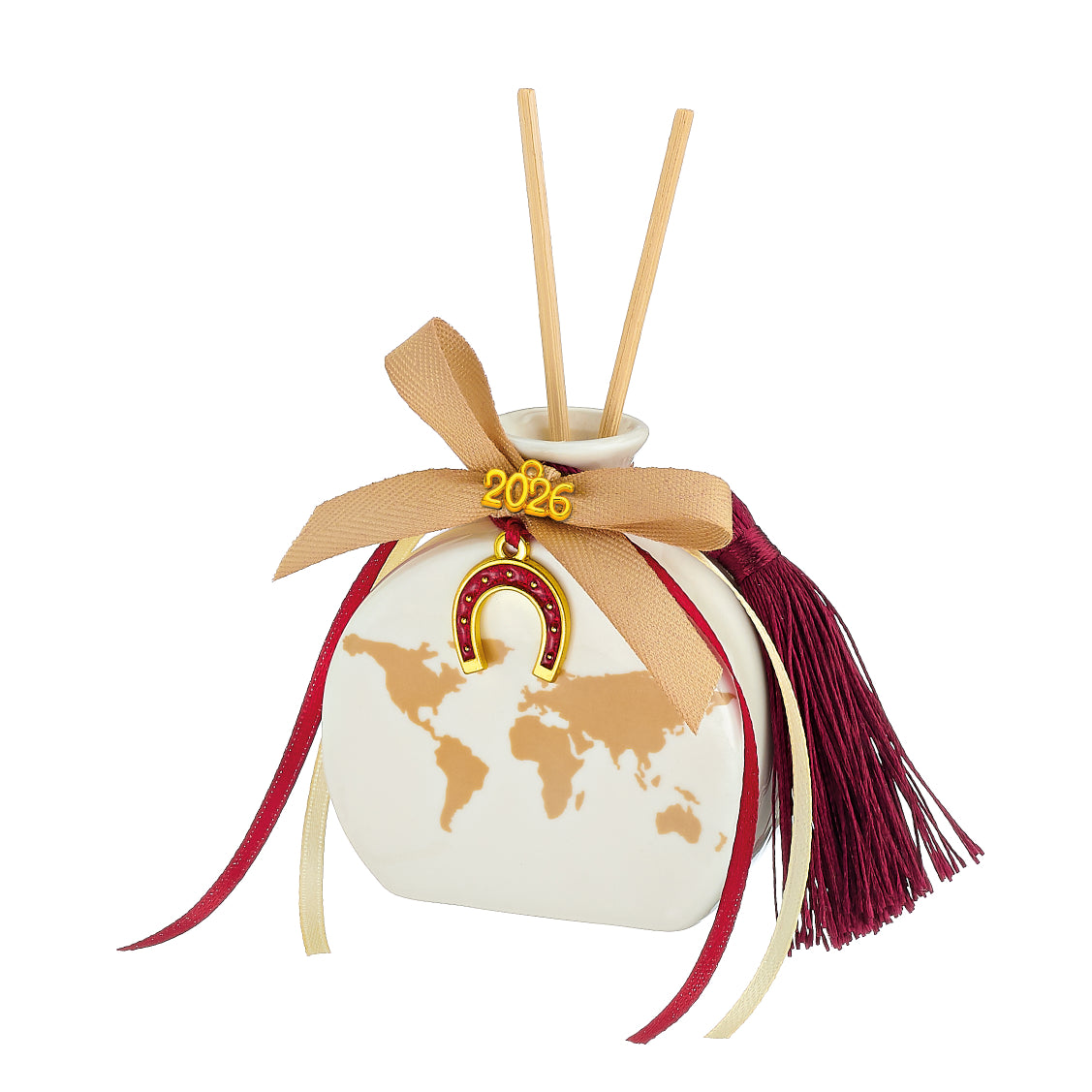 Υδρόγειος Γυάλινο Διακοσμητικό Μπουκάλι Επιτραπέζιο Γούρι για το 2026 με Μεταλλικό Πέταλο συνδυασμένο με Φούντα και κορδέλες. Η διάσταση της είναι 8Χ8,5εκ.