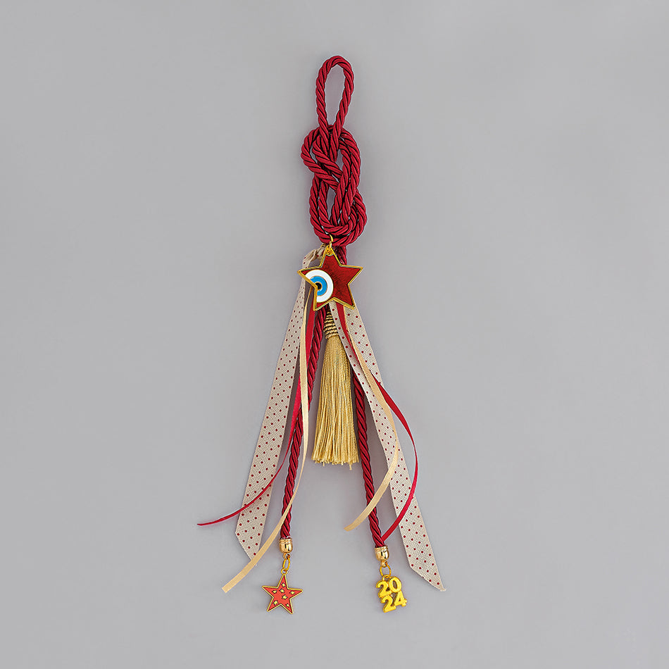 Χειροποίητο γούρι 2026 Κρεμαστό κορδόνι & Αστέρι Μπορντό με μισό Ματάκι.