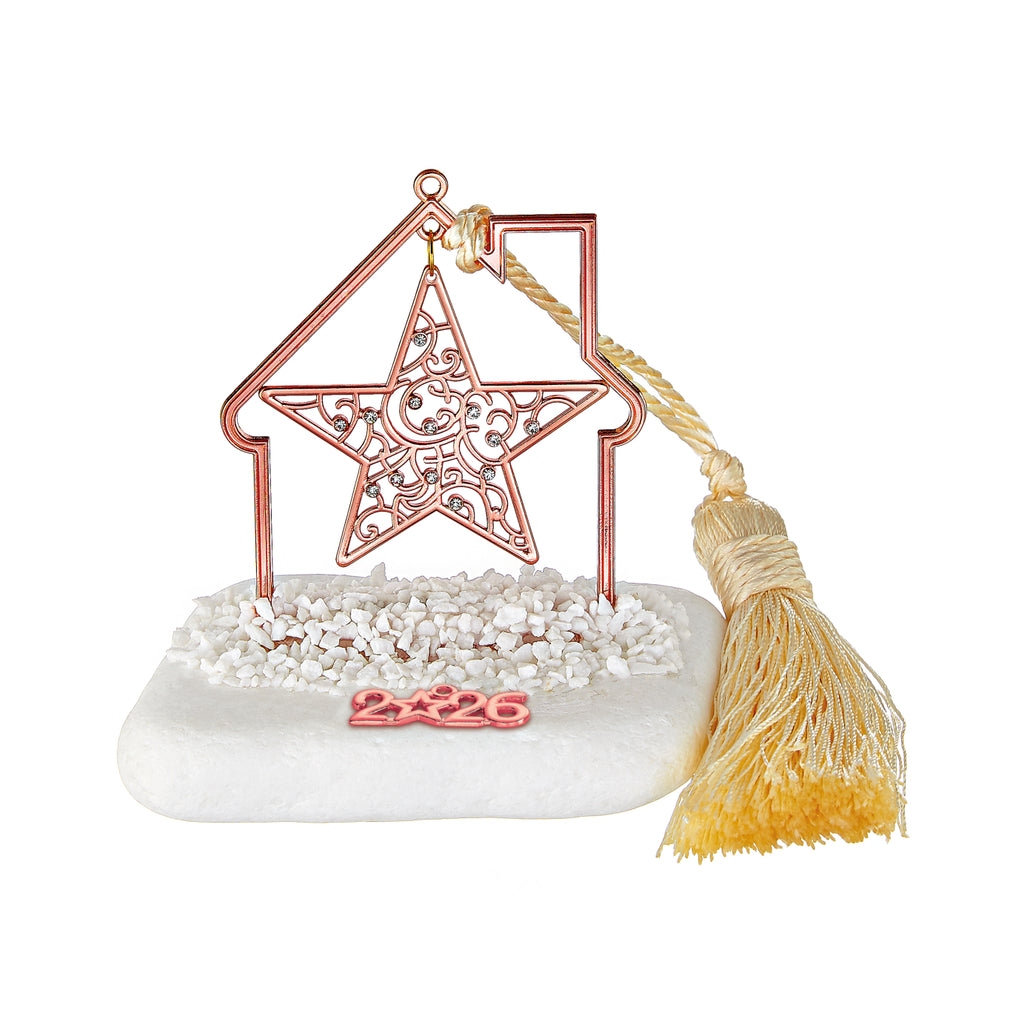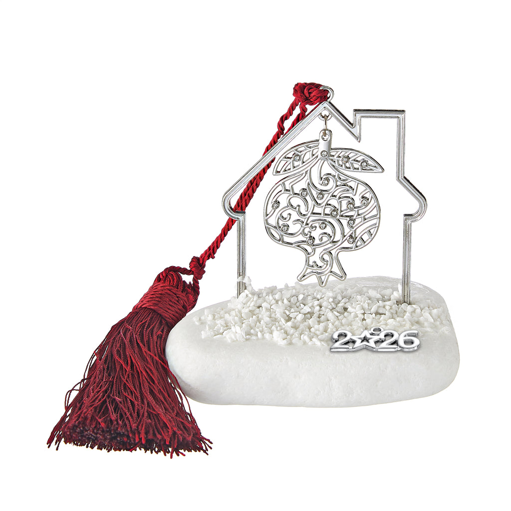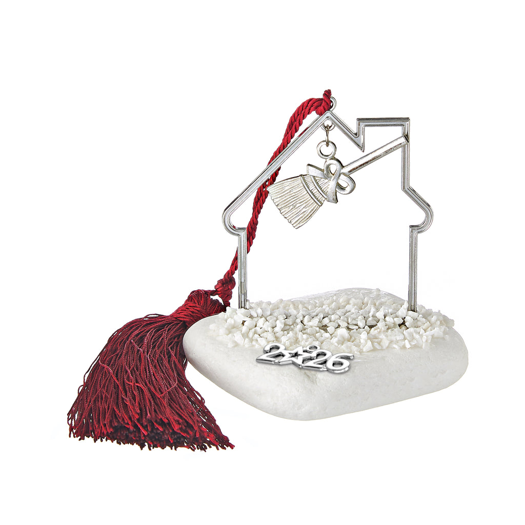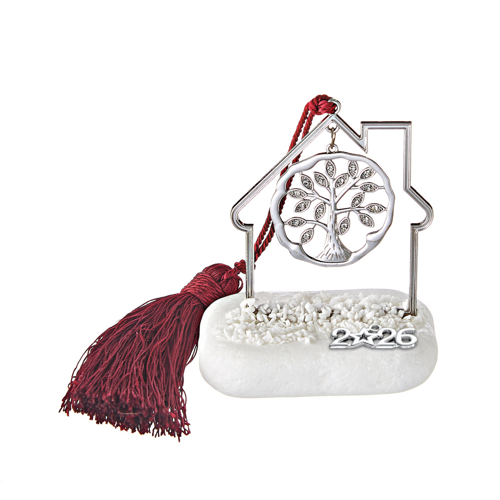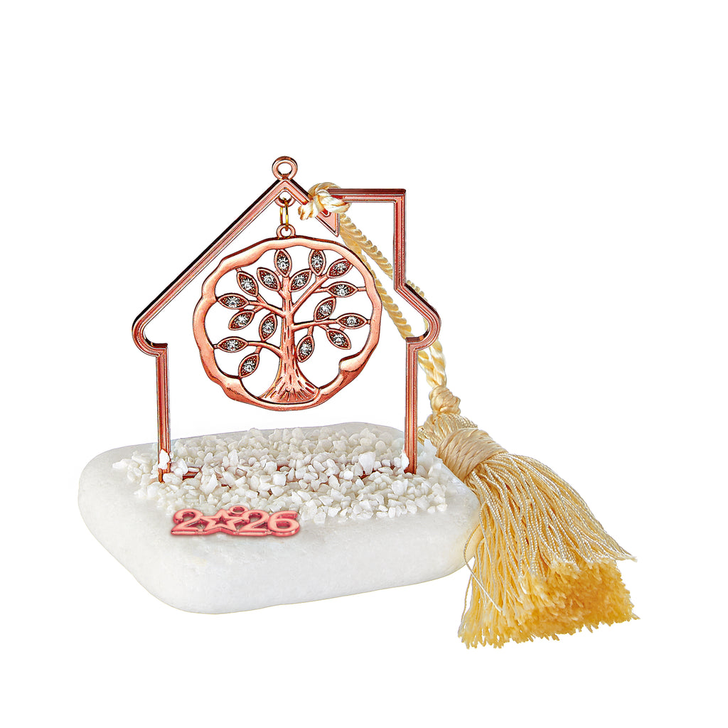 Ένα ιδιαίτερο χειροποίητο γούρι για το 2026, με φυσική πέτρα, σπιτάκι με σμάλτο και γιορτινά μεταλλικά στοιχεία. Ιδανικό για να χαρίσετε τύχη και αγάπη σε φίλους, οικογένεια ή πελάτες.