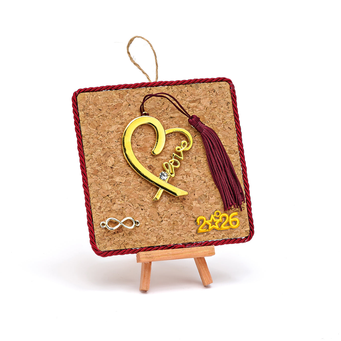 Eπιτραπέζιο Γούρι 2026 Πίνακας Φελλού 11εκ σε Καβαλέτο & Μεταλλική Καρδιά με Στρας 5.5Χ7 εκ. Συνολικό Ύψος περίπου 14εκ.