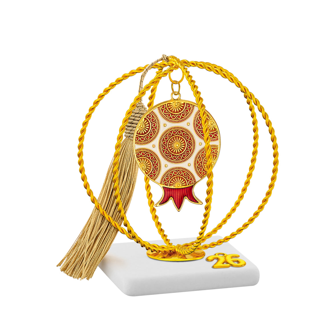 Γούρι 2026 Ρόδι σε Μαρμάρινη Βάση, Χρυσές Πλεξούδες και Φούντα Υ13εκ.
