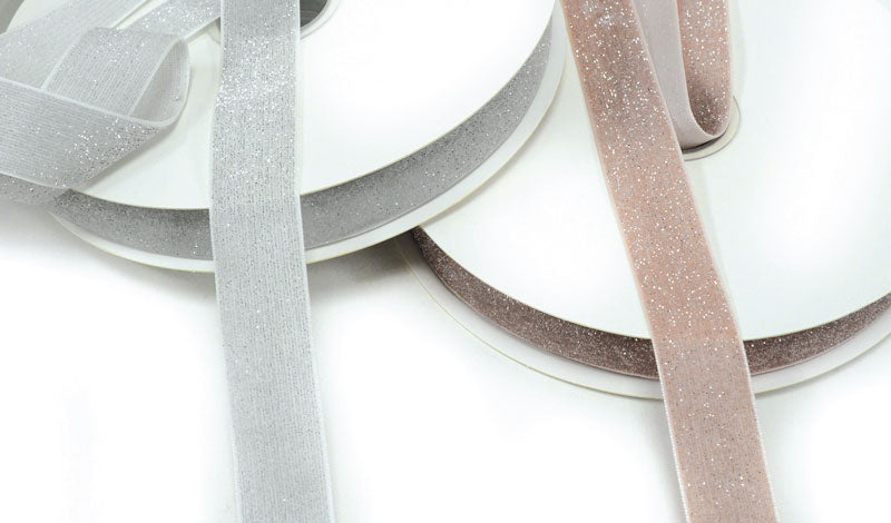 Κορδέλα Βελούδινη με Ασημί γκλίτερ σε Ασπρό και Σάπιο Μήλο χρώμα 2.5εκ 22m.