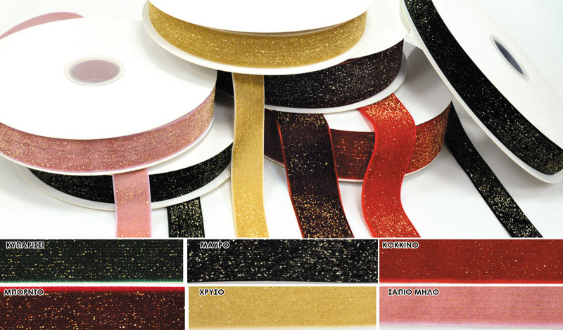 Κορδέλα Βελούδινη με Χρυσό γκλίτερ 1εκ 22m.