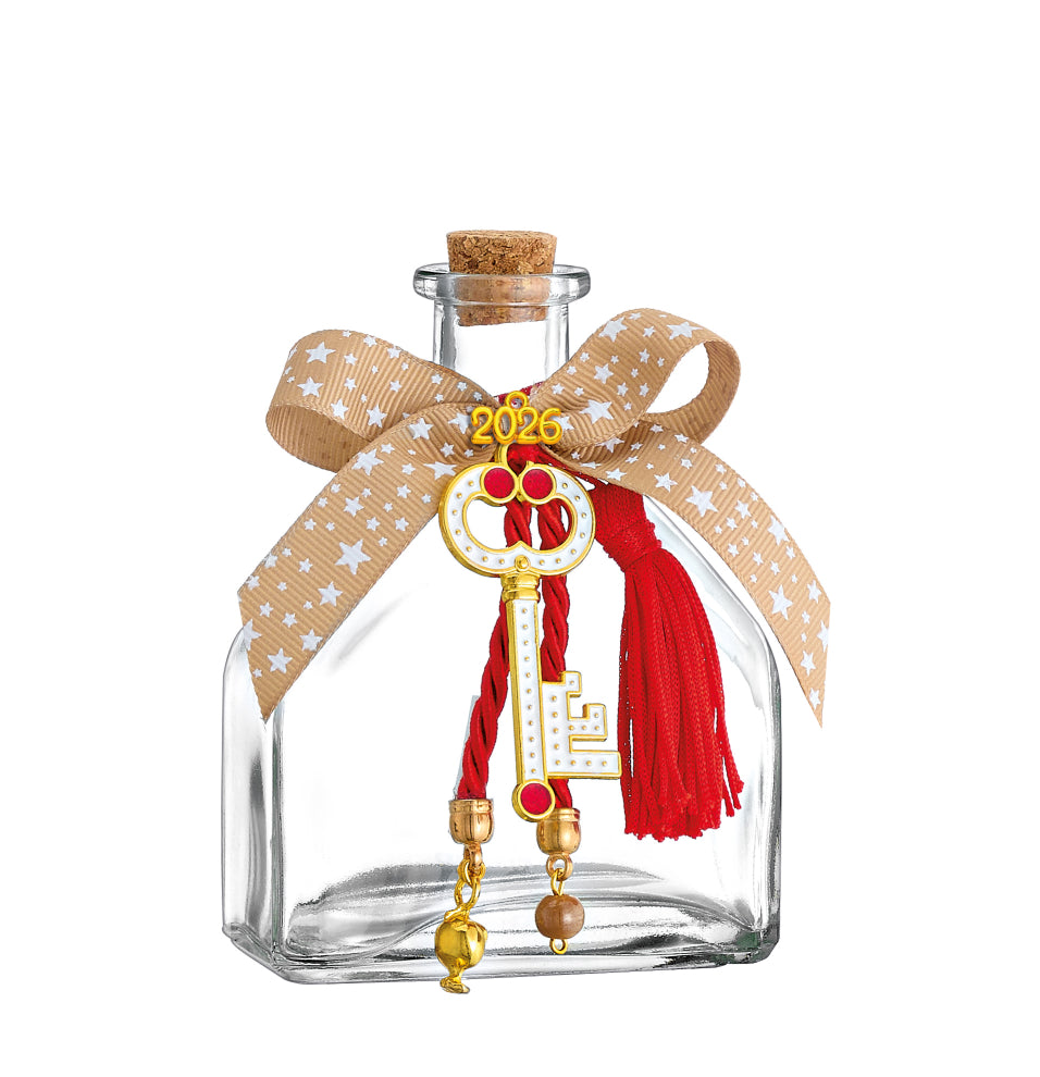 Χειροποίητο Γούρι 2026 σε Γυάλινο μπουκαλάκι με κλειδί & Φούντα Υ11εκ.