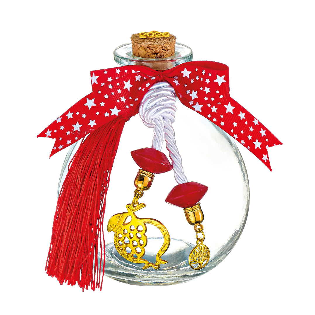 Χειροποίητο Γούρι 2026 σε Γυάλινο βαζάκι με Ρόδι & Φούντα Υ10,3εκ.