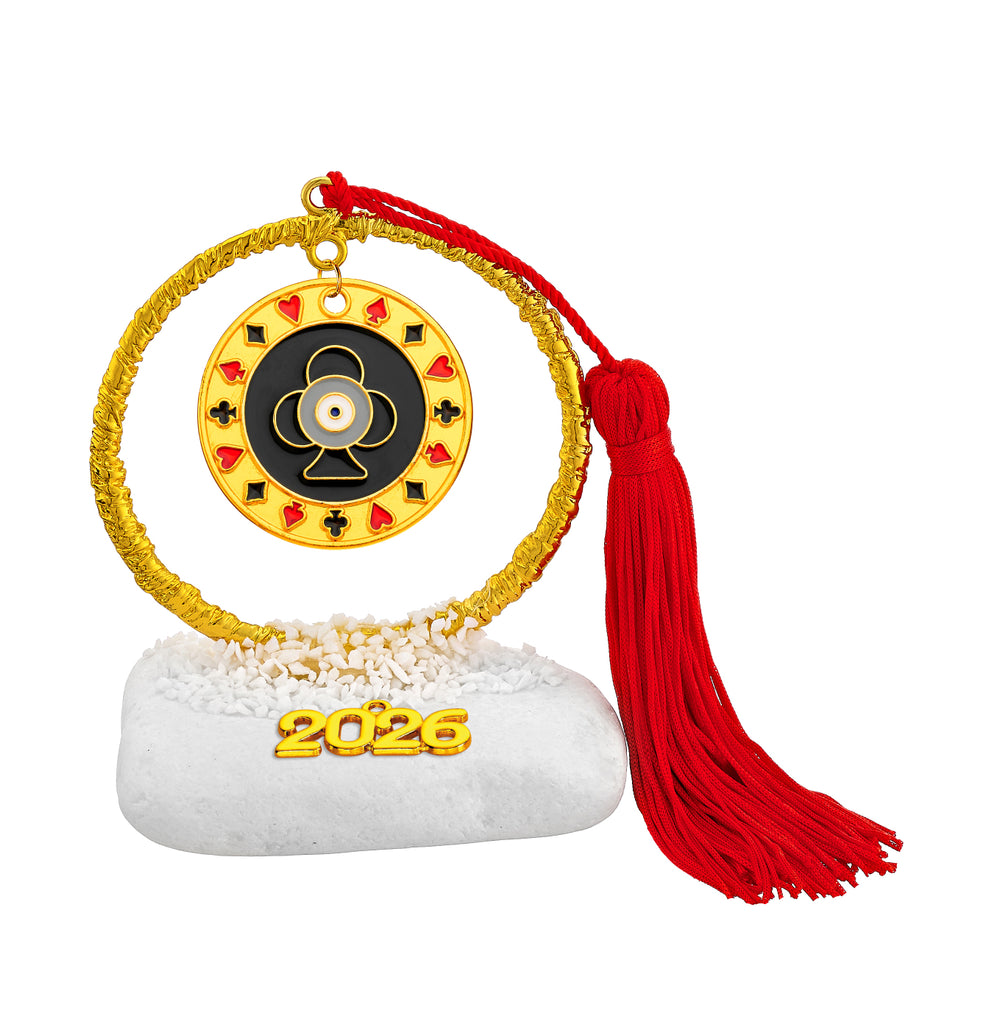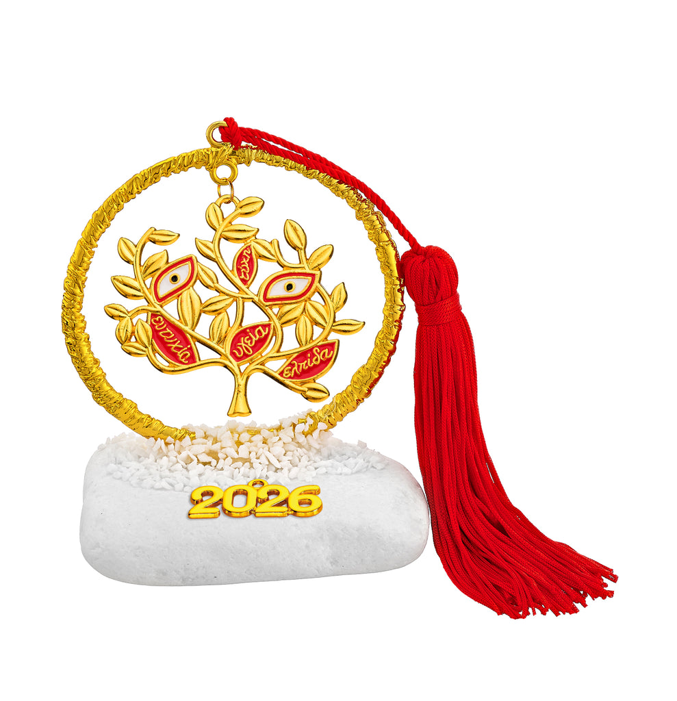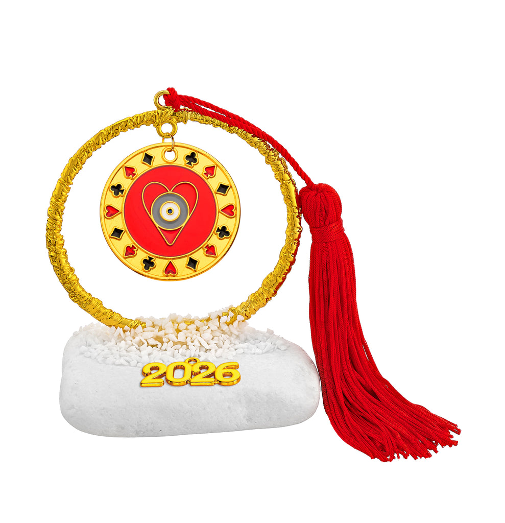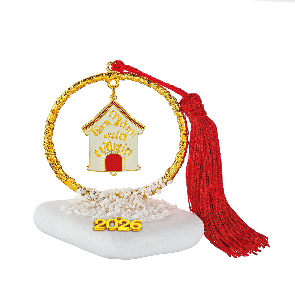 Μοναδικά σφυρήλατα γούρια με κυκλική μεταλλική βάση, συνδυασμένα με ευχές και σύμβολα τύχης.