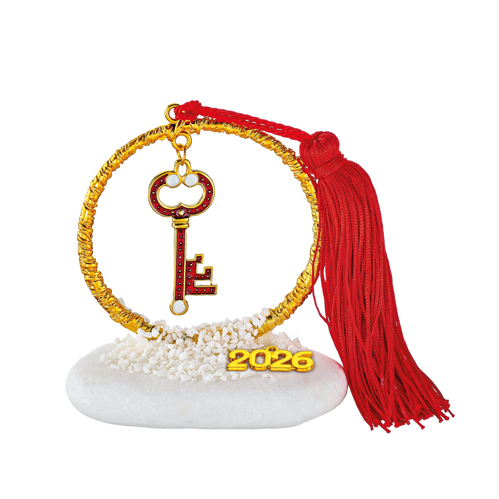 Γούρι 2026 Σφυρήλατος Κύκλος με Κλειδί Μπορντό & Κόκκινη Φούντα Υ12εκ.