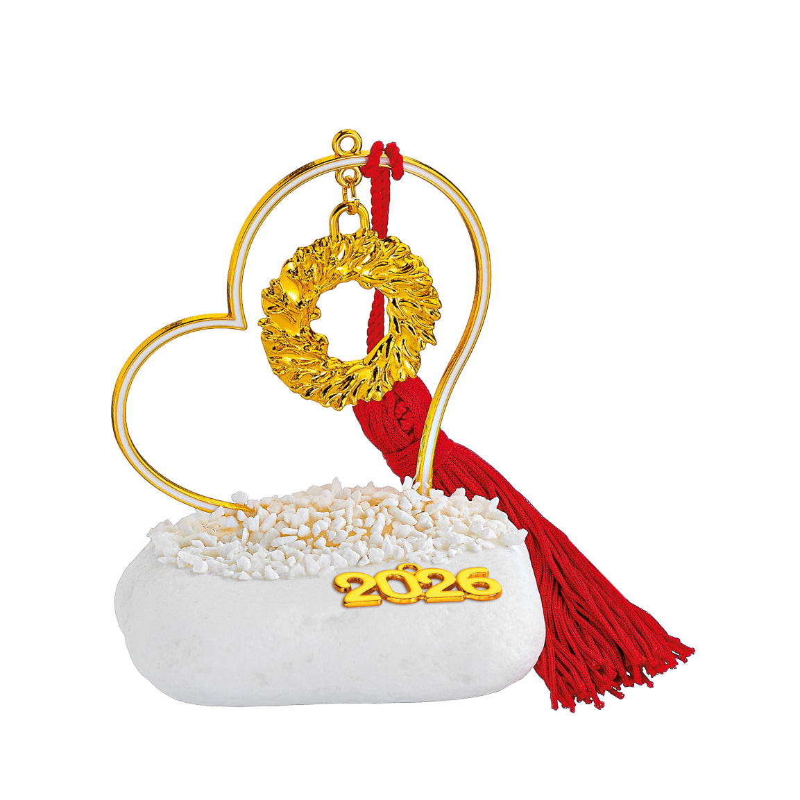 Γούρι 2026 Βότσαλο Περίγραμμα Καρδιά Άσπρη & Μεταλλικό Στεφάνι Χρυσό Υ10εκ.