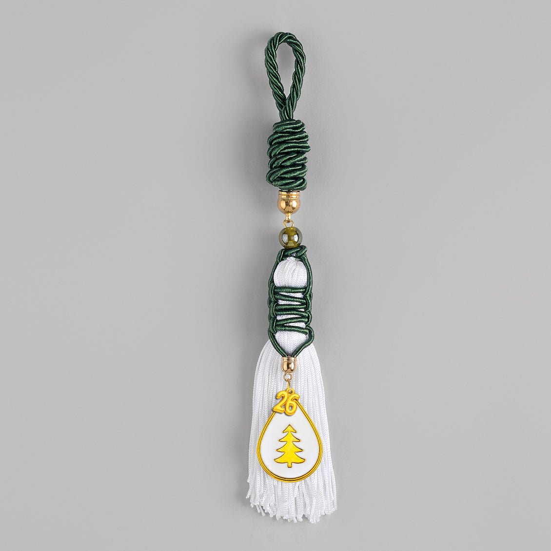 Χειροποίητο γούρι 2026 Κρεμαστό Δάκρυ με Δέντρο & Ασπρη Φούντα.
