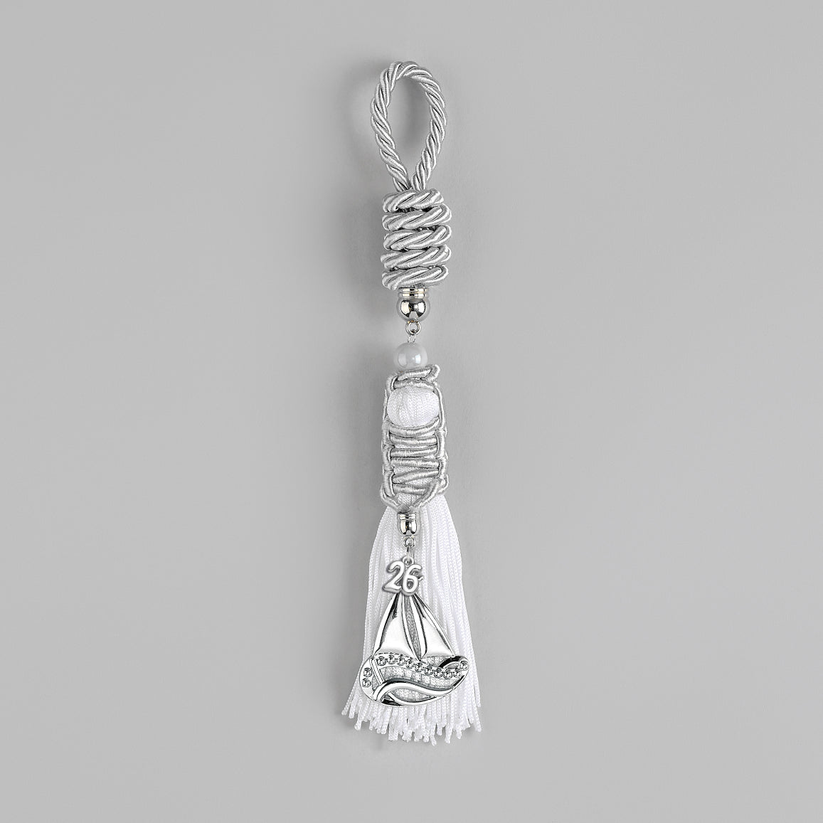 Χειροποίητο γούρι 2026 Κρεμαστό με Καράβι & Λευκή Φούντα.
