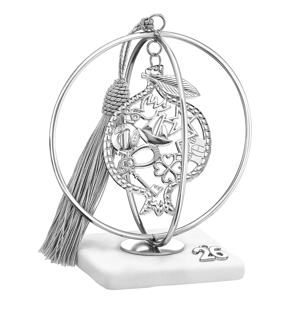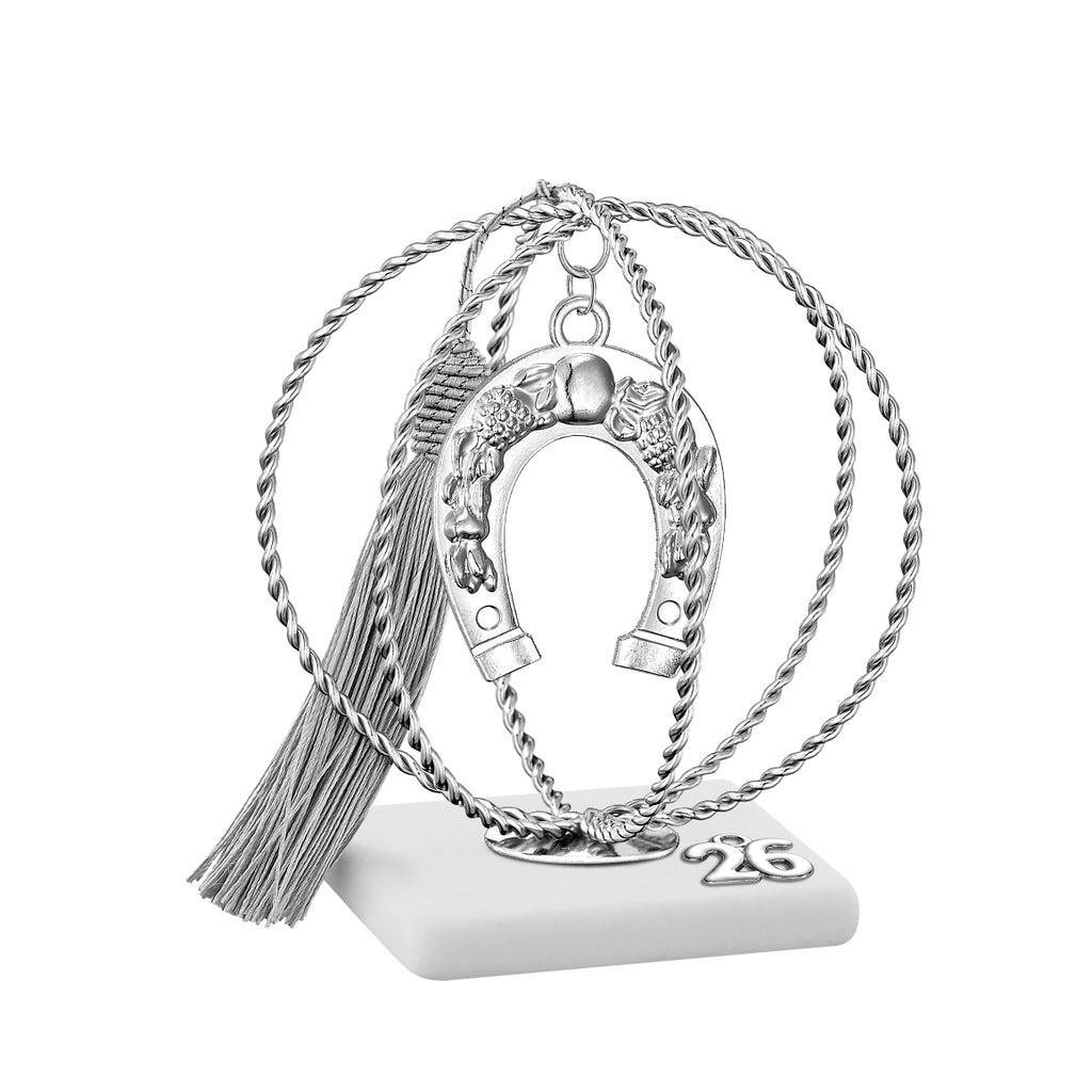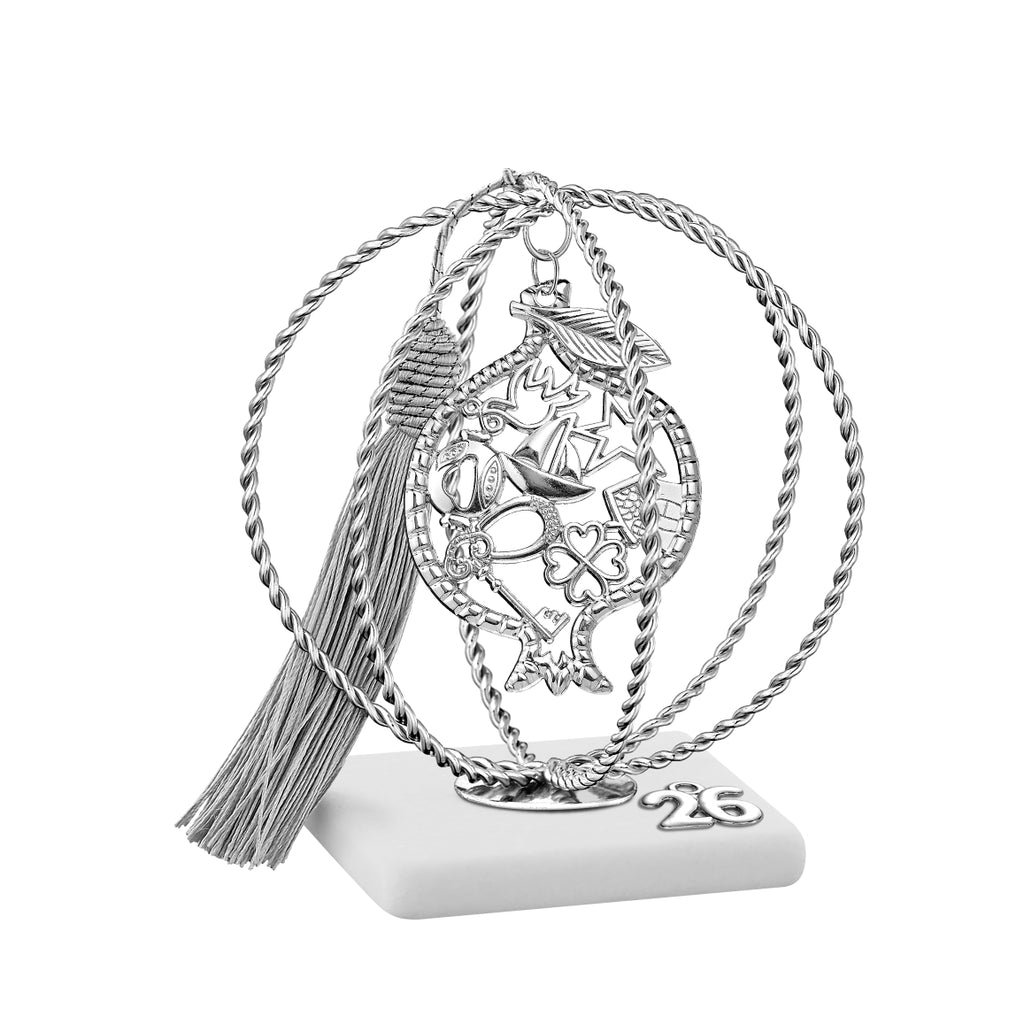 Η συλλογή από μαρμάρινα γούρια ασημί 2026 συνδυάζει την κομψότητα του φυσικού μαρμάρου με τη διακριτική λάμψη του ασημί. Με σφαίρα–κλουβί και κρεμαστά μεταλλικά στοιχεία, αποτελούν εντυπωσιακά επιτραπέζια διακοσμητικά που δίνουν γιορτινή ατμόσφαιρα στο σπίτι ή το γραφείο. Ένα ξεχωριστό γούρι για Χριστούγεννα και Πρωτοχρονιά που μεταφέρει ευχές για καλή τύχη και ευημερία.