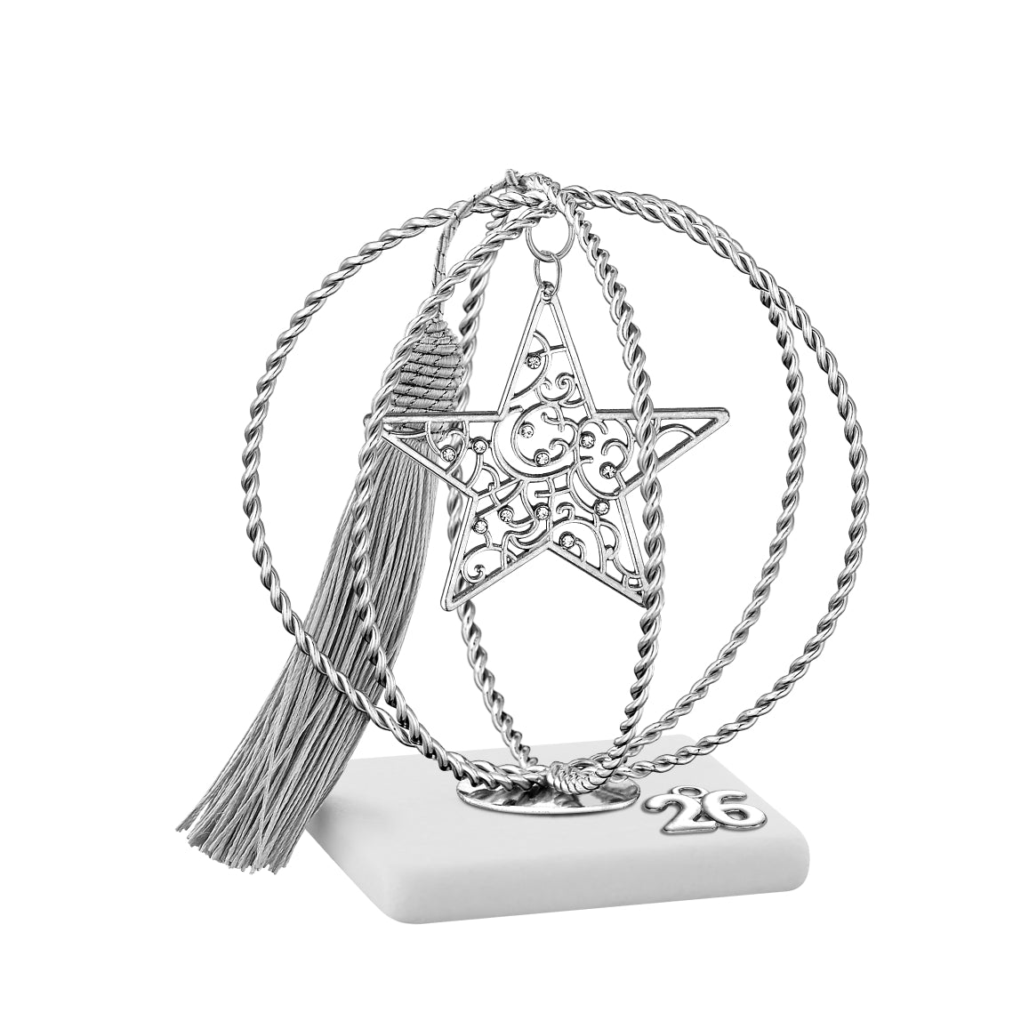 Γούρι 2026 Αστέρι σε Μαρμάρινη Βάση ασημί Πλεξούδες & Φούντα Y13εκ.