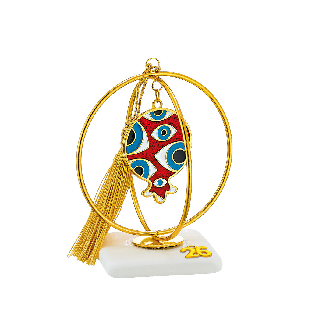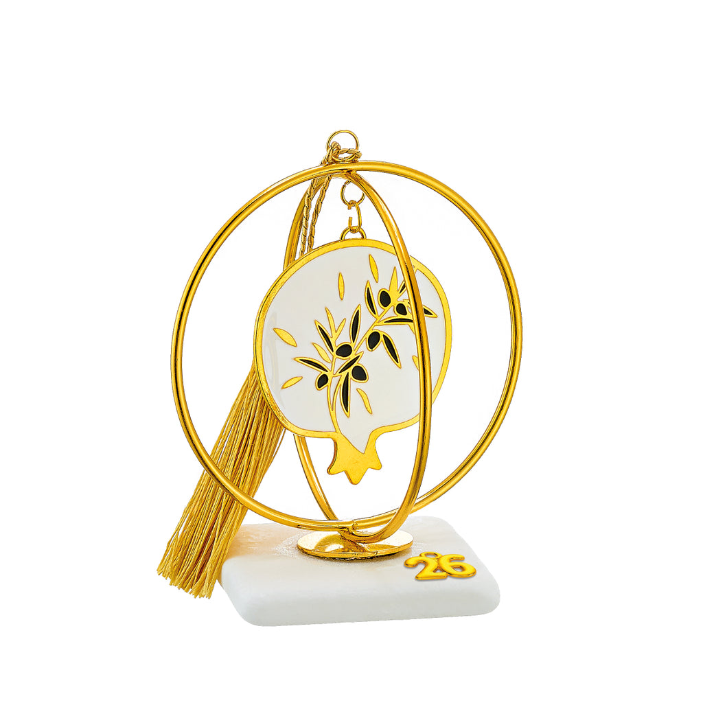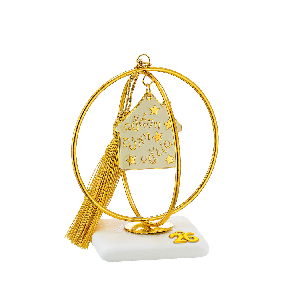Γούρια 2026 με τετράγωνη μαρμάρινη βάση και εντυπωσιακή σφαίρα–κλουβί που αγκαλιάζει ένα μεταλλικό στοιχείο. Ένας ξεχωριστός συνδυασμός φυσικής πέτρας και κομψών λεπτομερειών που χαρίζει στα γούρια ιδιαίτερο χαρακτήρα. Ιδανικά για Χριστούγεννα και Πρωτοχρονιά, στολίζουν με στυλ το σπίτι ή το γραφείο και συνοδεύουν τις ευχές για το νέο έτος.