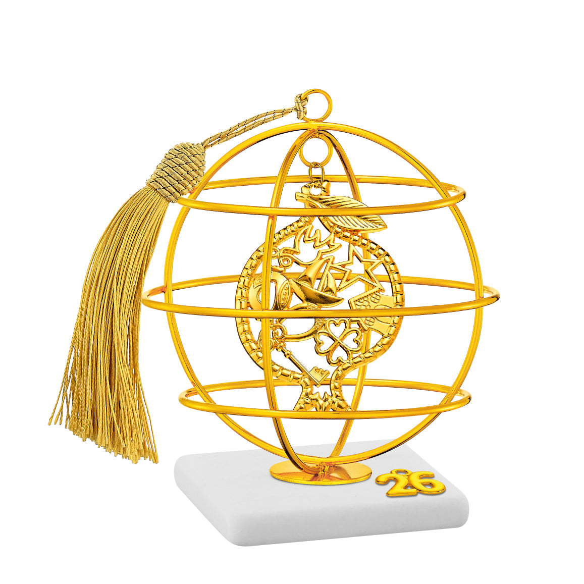 Χειροποίητο Επιτραπέζιο Γούρι 2026 σε εντυπωσιακή σφαίρα με ρόδι με σχέδια χρυσό για τύχη και προστασία Ιδανικό δώρο για το νέο έτος ή για να διακοσμήσετε το σπίτι σας με λάμψη και θετική ενέργεια.