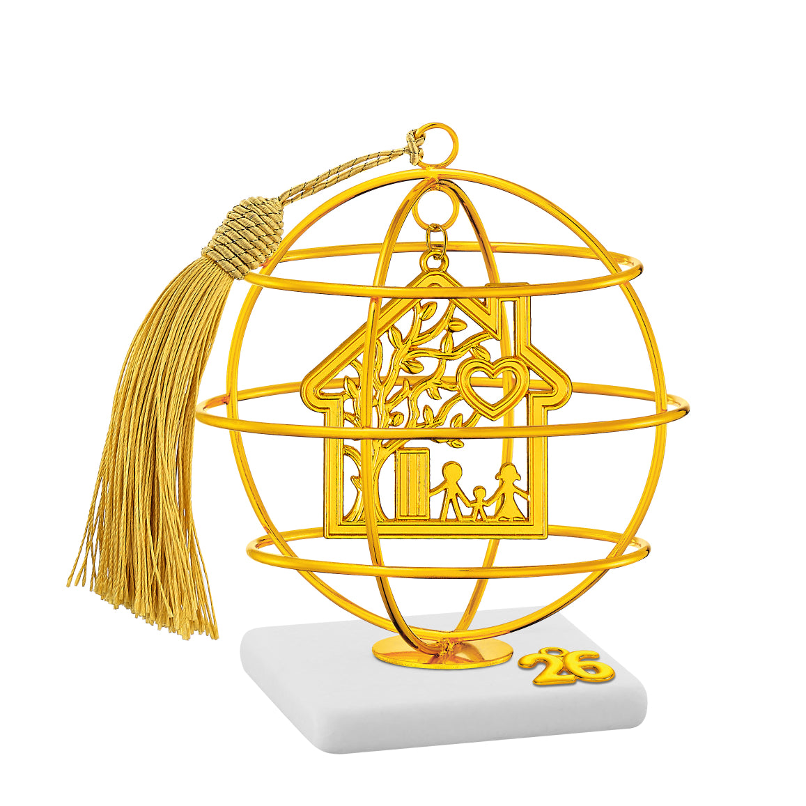 Γούρι 2026 Σπιτάκι με οικογένεια σε Χρυσή Σφαίρα & Φούντα- Χειροποίητο Διακοσμητικό Υ13εκ.