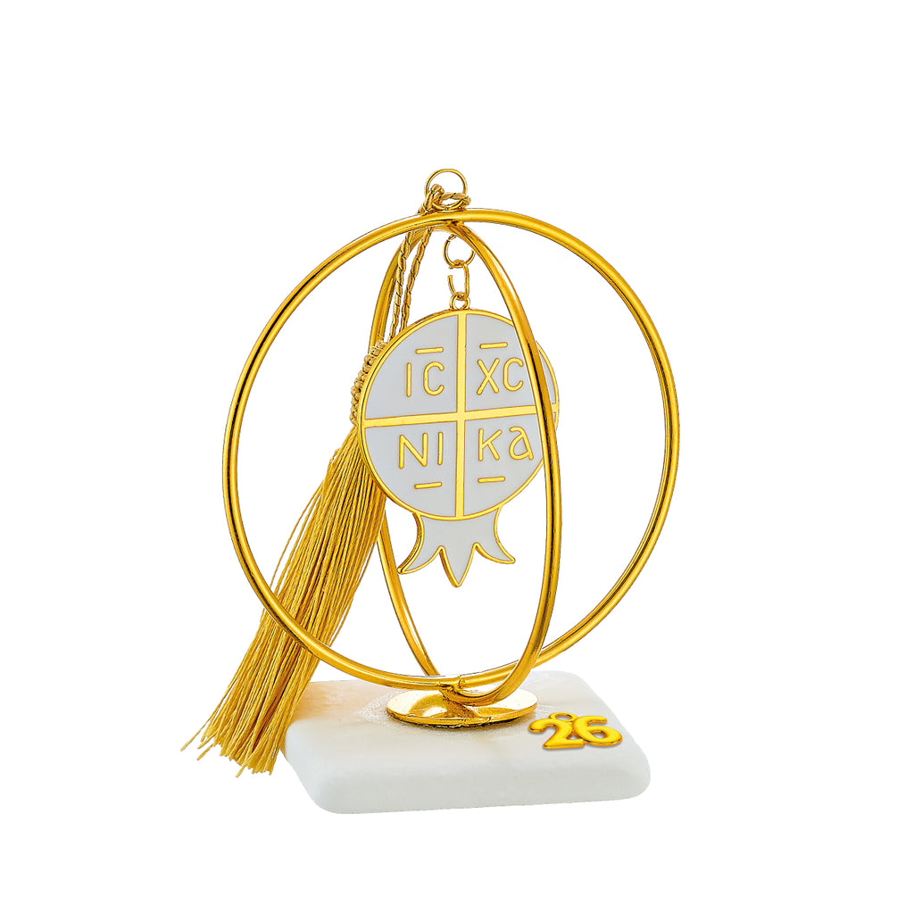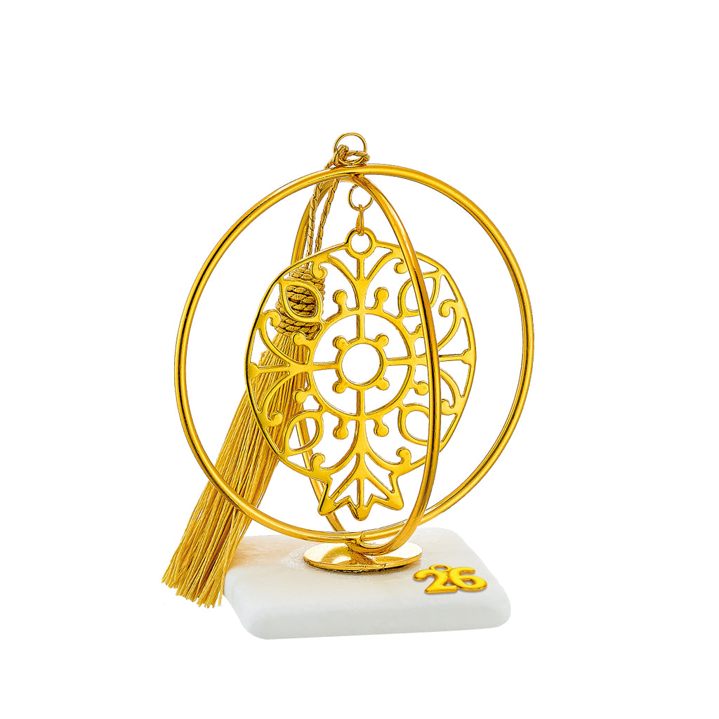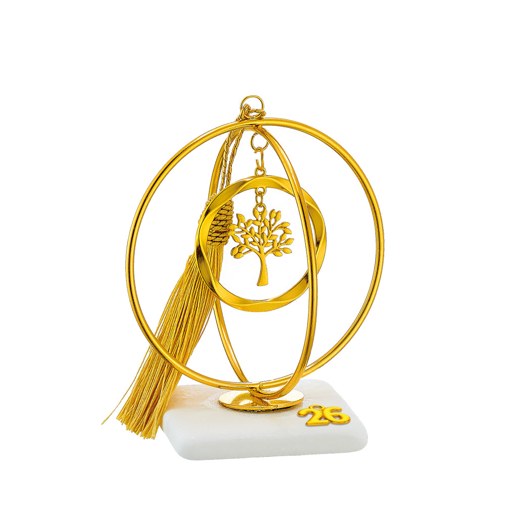 Γούρια 2026 με τετράγωνη μαρμάρινη βάση και εντυπωσιακή σφαίρα–κλουβί που αγκαλιάζει ένα μεταλλικό στοιχείο. Ένας ξεχωριστός συνδυασμός φυσικής πέτρας και κομψών λεπτομερειών που χαρίζει στα γούρια ιδιαίτερο χαρακτήρα. Ιδανικά για Χριστούγεννα και Πρωτοχρονιά, στολίζουν με στυλ το σπίτι ή το γραφείο και συνοδεύουν τις ευχές για το νέο έτος.