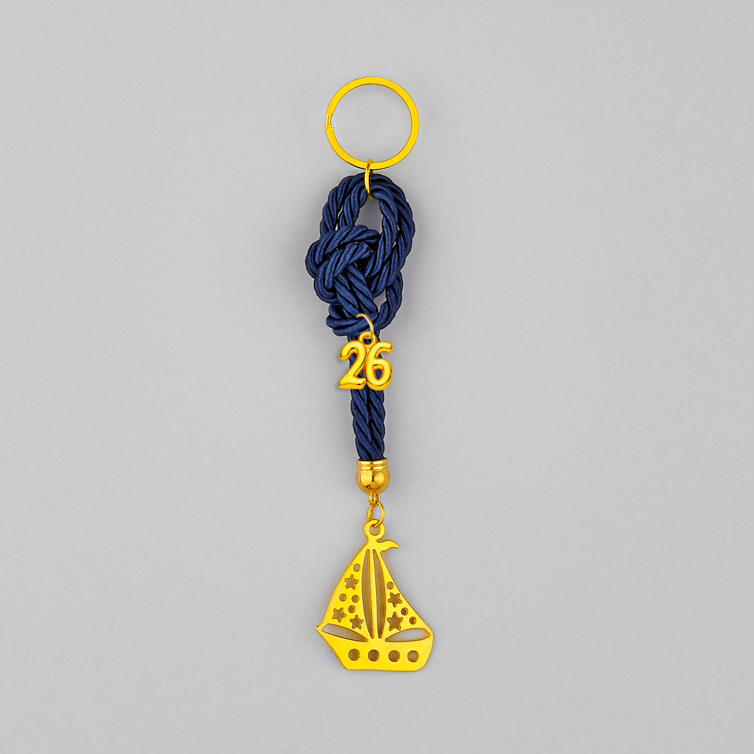 Χειροποίητο Γούρι 2026 Κρεμαστό Μπρελόκ κορδόνι με δέσιμο, Μεταλλικό Καράβι με Αστέρια σε χρυσό χρώμα 3,5Χ4,5εκ. Συνολικό ύψος περίπου 13εκ.