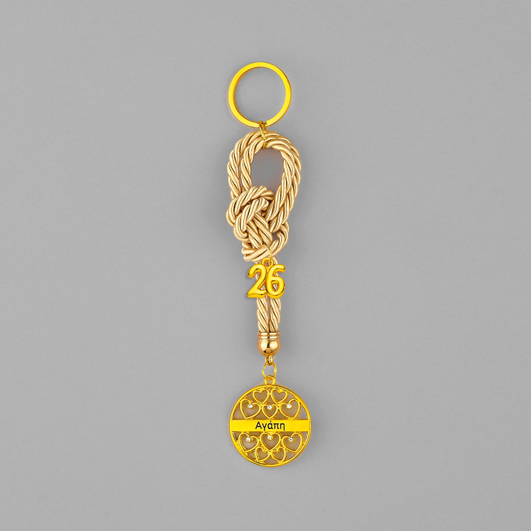 Χειροποίητο Γούρι 2026 Κρεμαστό Μπρελόκ κορδόνι με δέσιμο, Μεταλλικός Κύκλος με Καρδίες Αγάπη χρυσό χρώμα Δ3,5εκ. Συνολικό ύψος περίπου 13εκ.