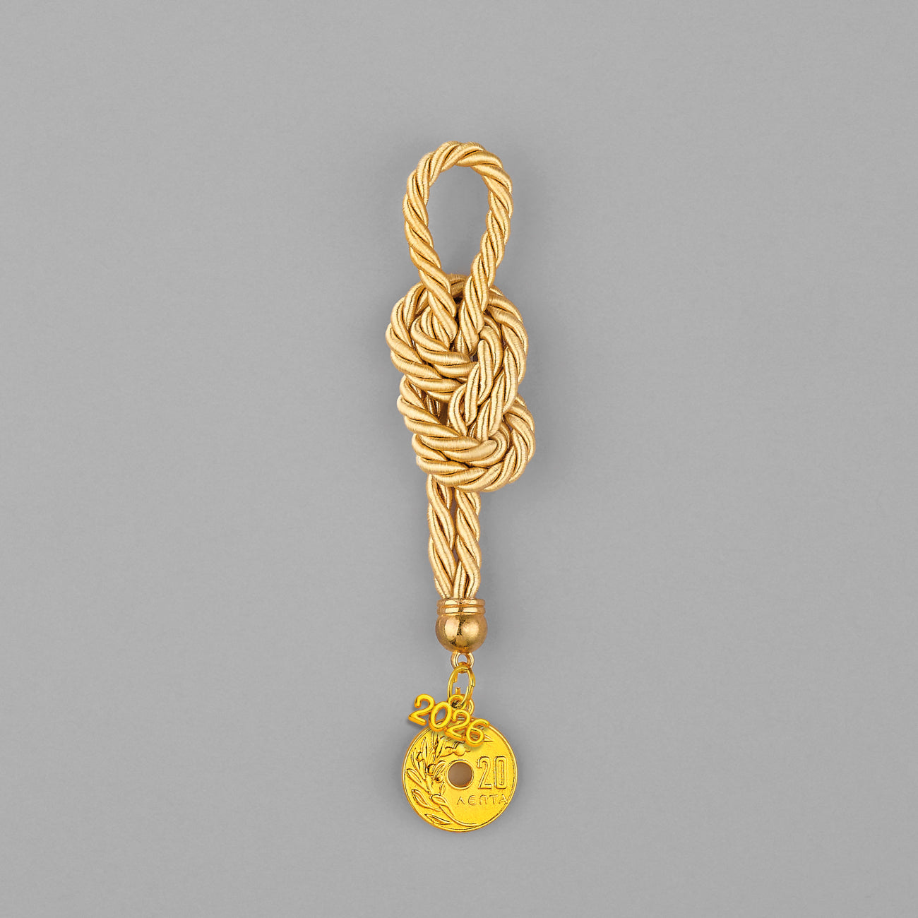 Χειροποίητο Γούρι 2026 Κρεμαστό κορδόνι με δέσιμο, Μεταλλική Εικοσάρα χρυσό χρώμα 2,2Χ2,1εκ. Συνολικό ύψος περίπου 13εκ.
