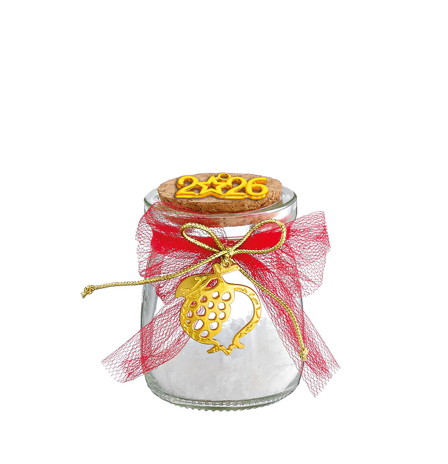 Χειροποίητο Οικονομικό Γούρι 2026 Γυάλινο Βαζάκι & Ρόδι Υ7εκ.