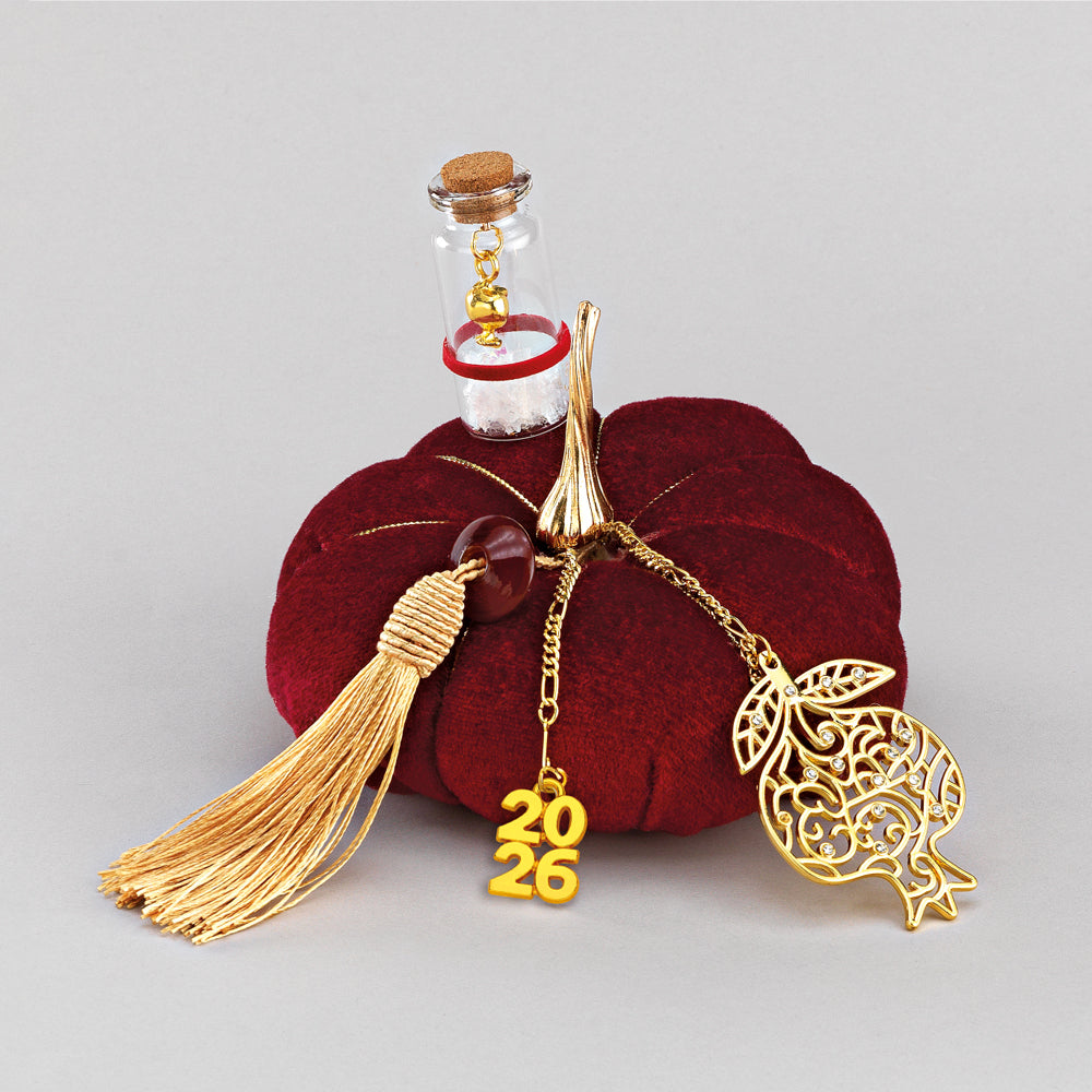 Χειροποίητη Κολοκύθα Γούρι 2026 σε Μπορντό χρώμα με Ρόδι με Στρας Δ13εκ.