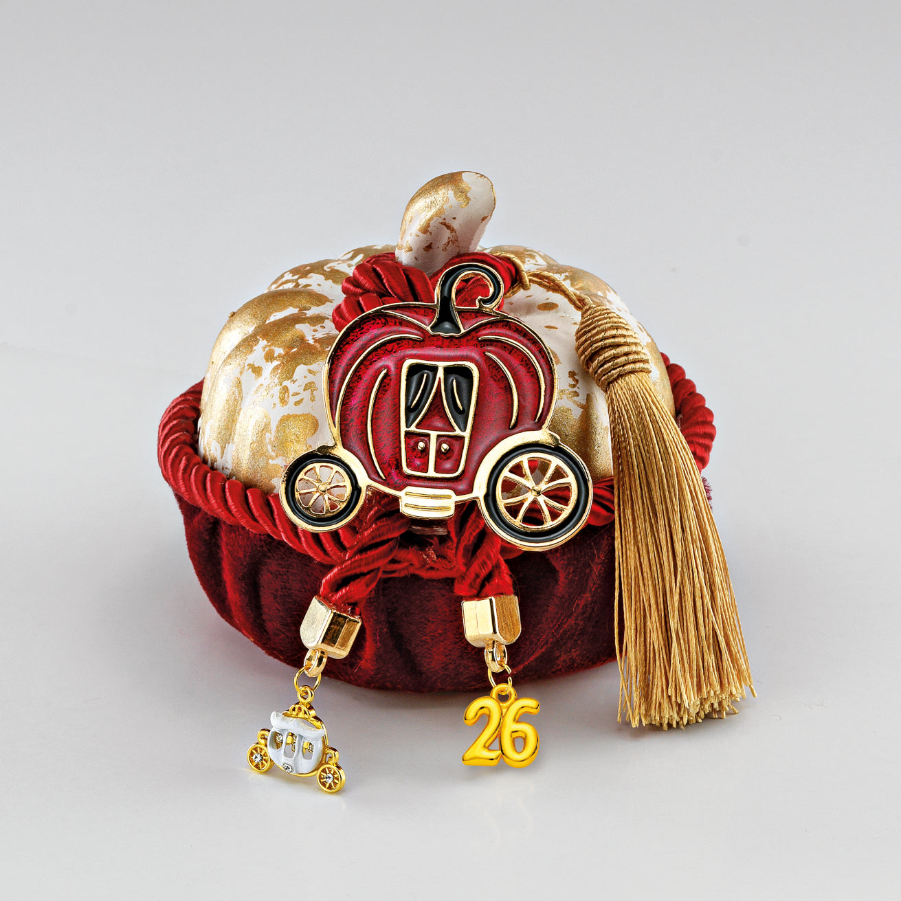Επιτραπέζια Χειροποίητη Κεραμική Κολοκύθα, Χριστουγεννιάτικο Γούρι για το 2026 σε εκρού με χρυσό χρώμα, μεταλλική Άμαξα Κολοκύθα Μπορντό χρώμα, κορδέλες, μεταλλική χρονολογία 2026 , μεταλλικό άμαξα με στρας και φούντα. Η διάσταση του είναι Δ9,5εκ.