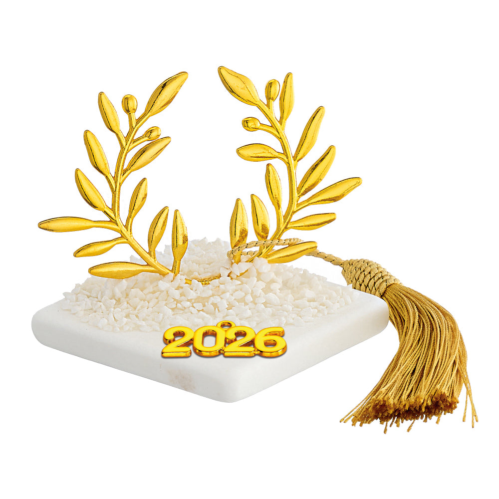 Γούρι 2026 με Κλαδί Ελιάς σε Μαρμάρινη Βάση και Χρυσή Φούντα Υ8εκ.