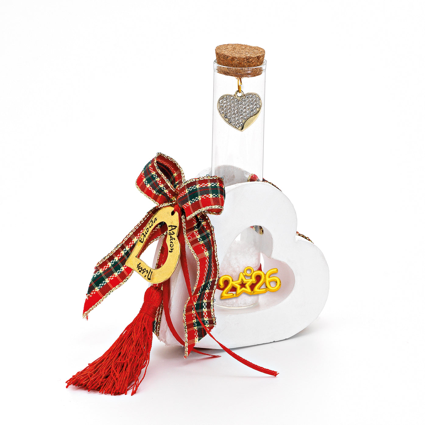 Κεραμική Καρδιά Eπιτραπέζιο Γούρι 2026 με Διακοσμητικό Σωλήνα 11.5Χ7,5Χ3,5εκ.
