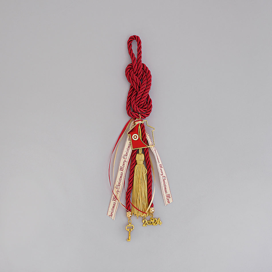 Χριστουγεννιάτικο Χειροποίητο γούρι 2026 Κρεμαστό κορδόνι & Διακοσμητικό Σπιτάκι με Πέταλο & Ματάκι.