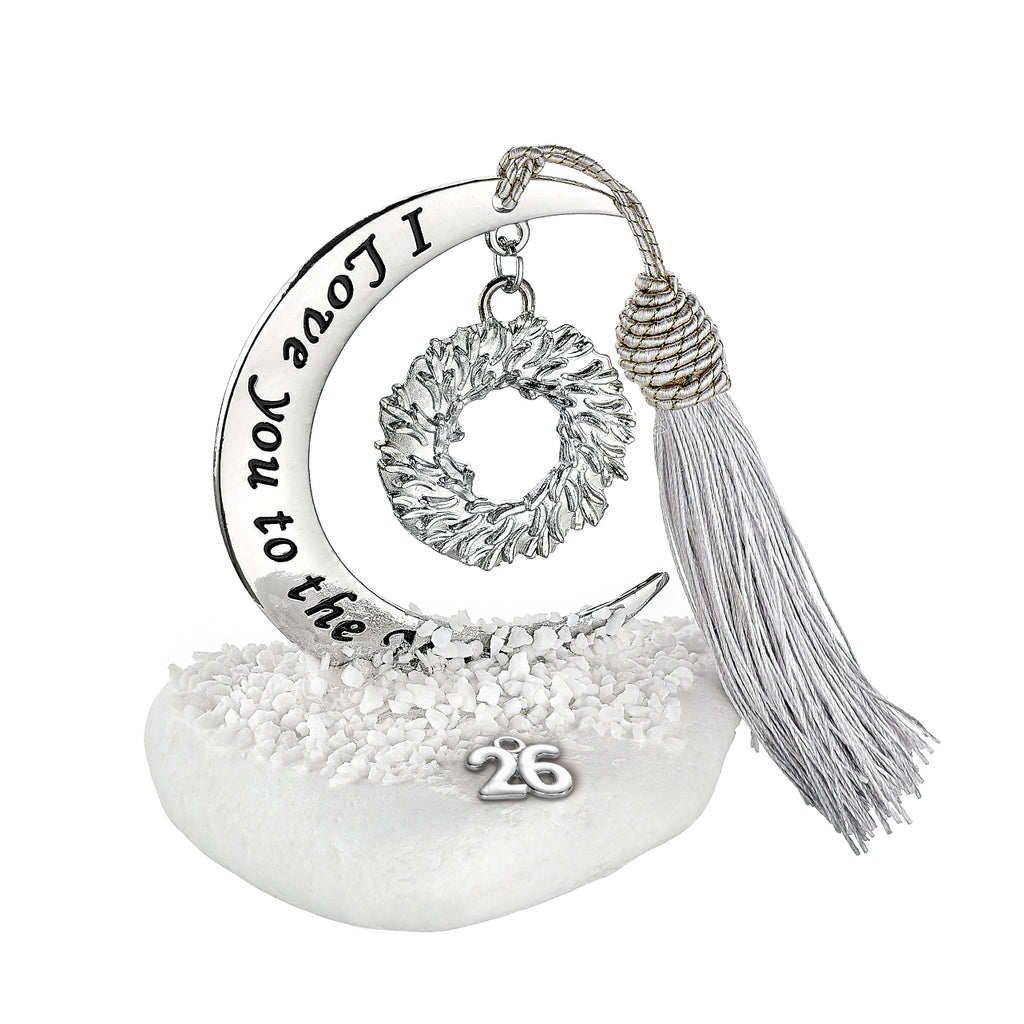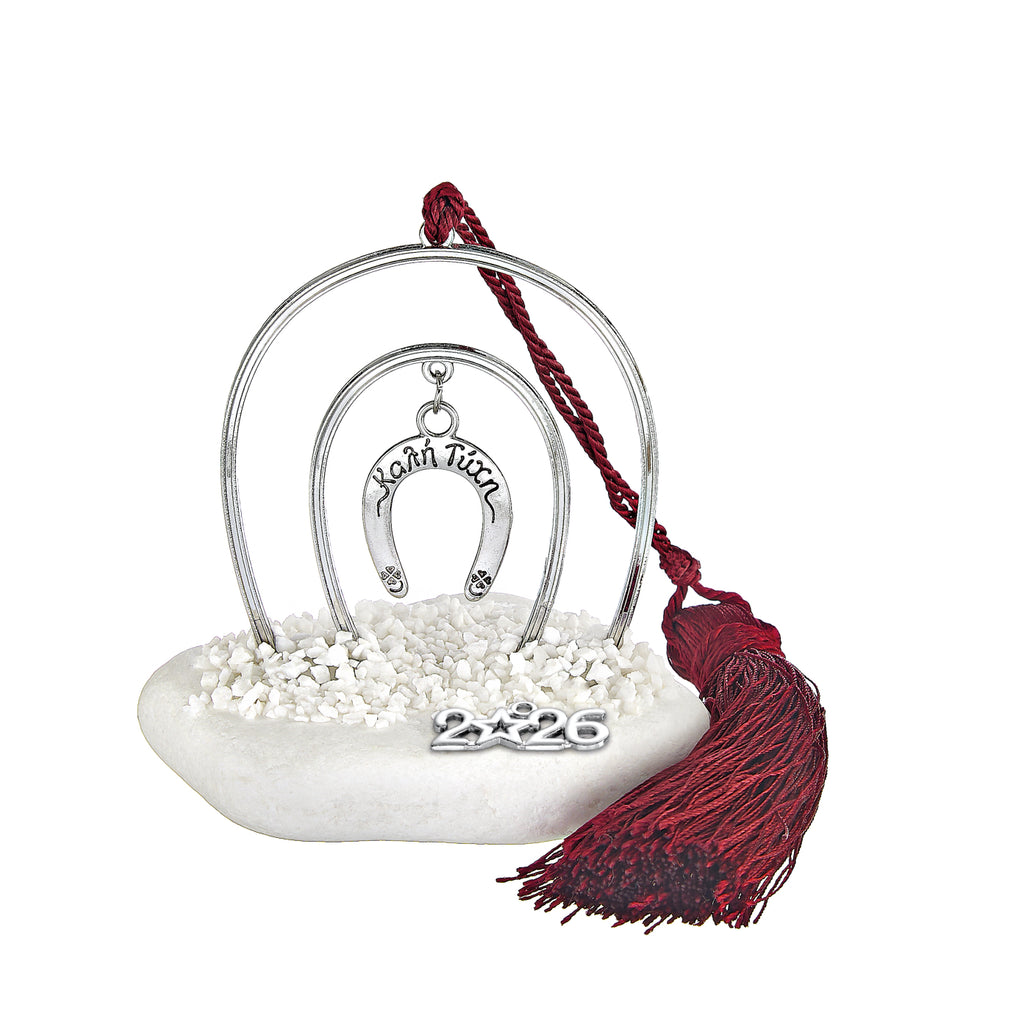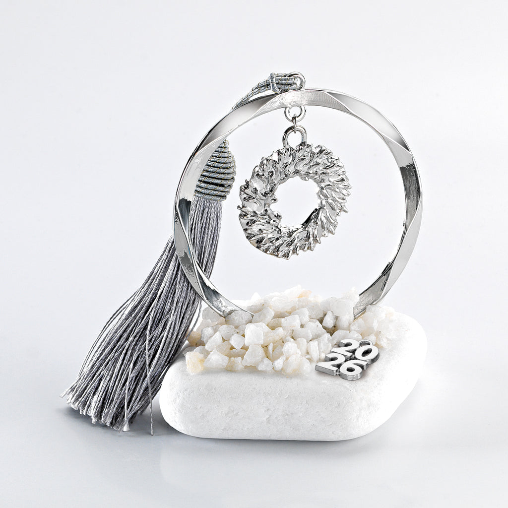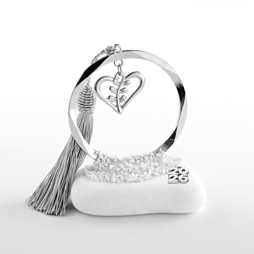 Χειροποίητο Επιτραπέζιο Γούρι 2026 βότσαλο με κύκλο & Στεφάνι Ασημί Υ9εκ.