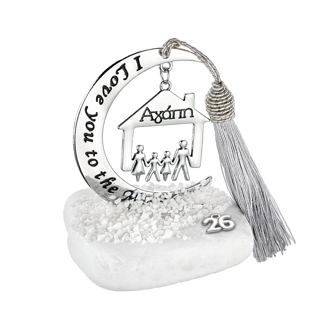 Γούρι 2026 σε βότσαλο με Μισοφέγγαρο & Σπιτάκι Αγάπη με Οικογένεια Υ10εκ.