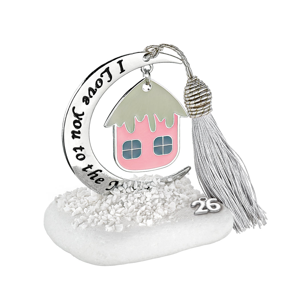 Γούρι 2026 σε βότσαλο με Μισοφέγγαρο & Σπιτάκι Ροζ Υ10εκ.