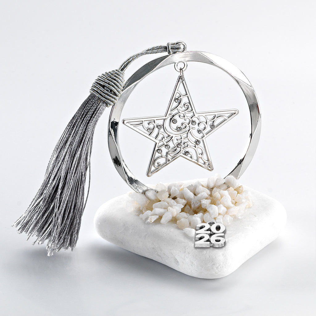 Γούρι 2026 Μεταλλικό Αστέρι σε πέτρα ασημένιο, Υ8εκ.