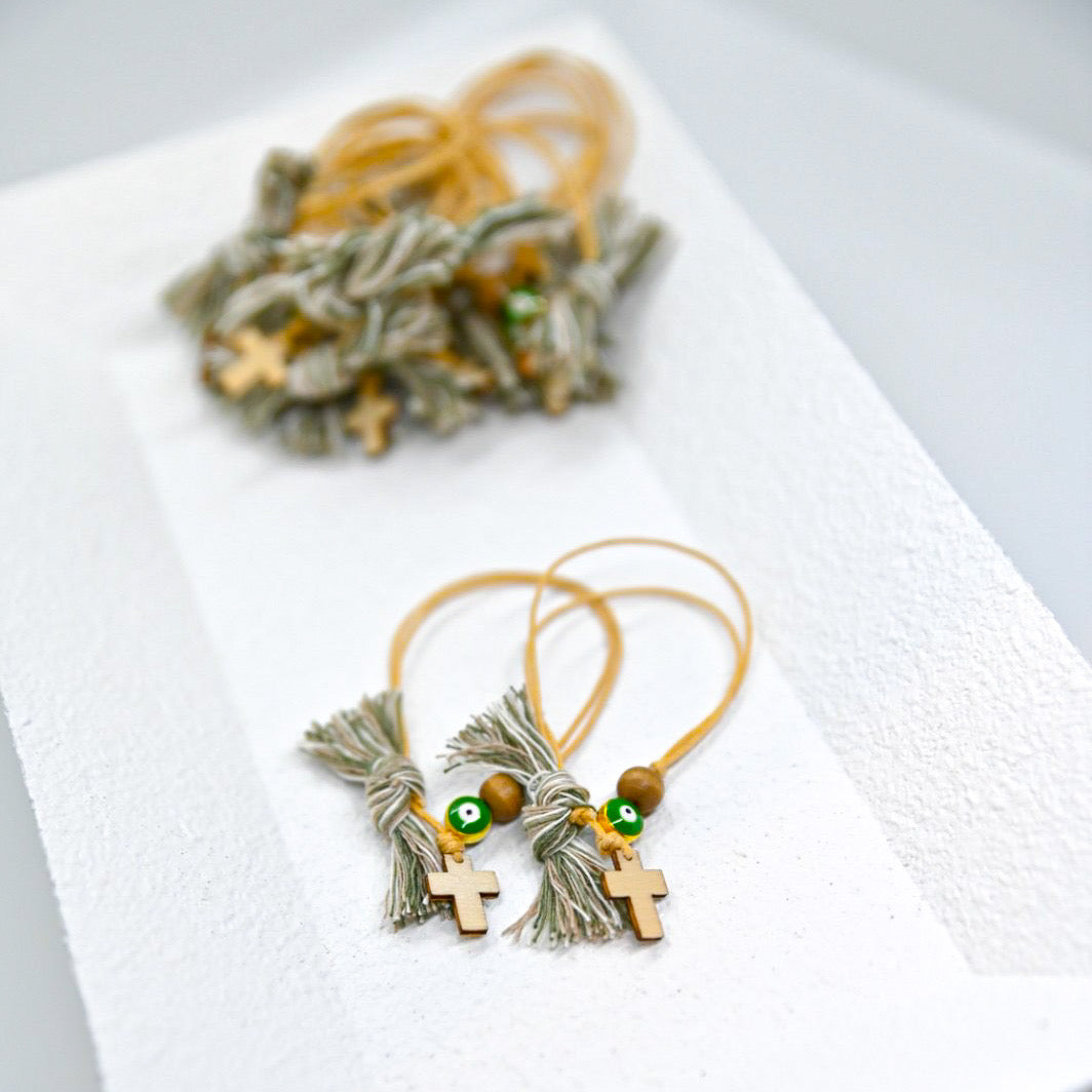 Αφήτεχνο - Βραχιόλι με ξύλινο σταυρουδάκι και επίχρυσο-ακρυλικό σμάλτο ματάκι 50τμχ.