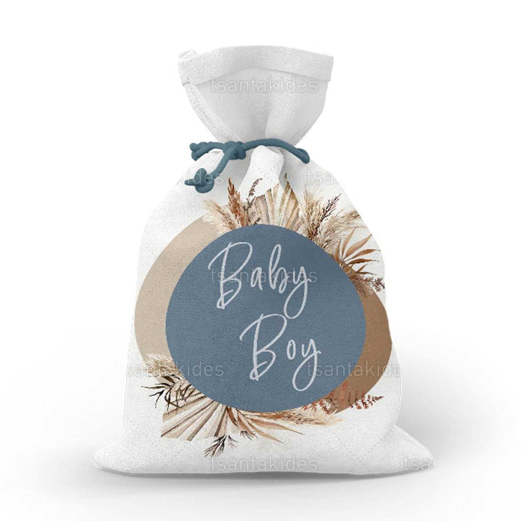 Μπομπονιέρα Βάπτισης Υφασμάτινο πουγκί εκτυπωμένο με θέμα Boho Baby Boy για Αγόρι 14Χ19εκ.