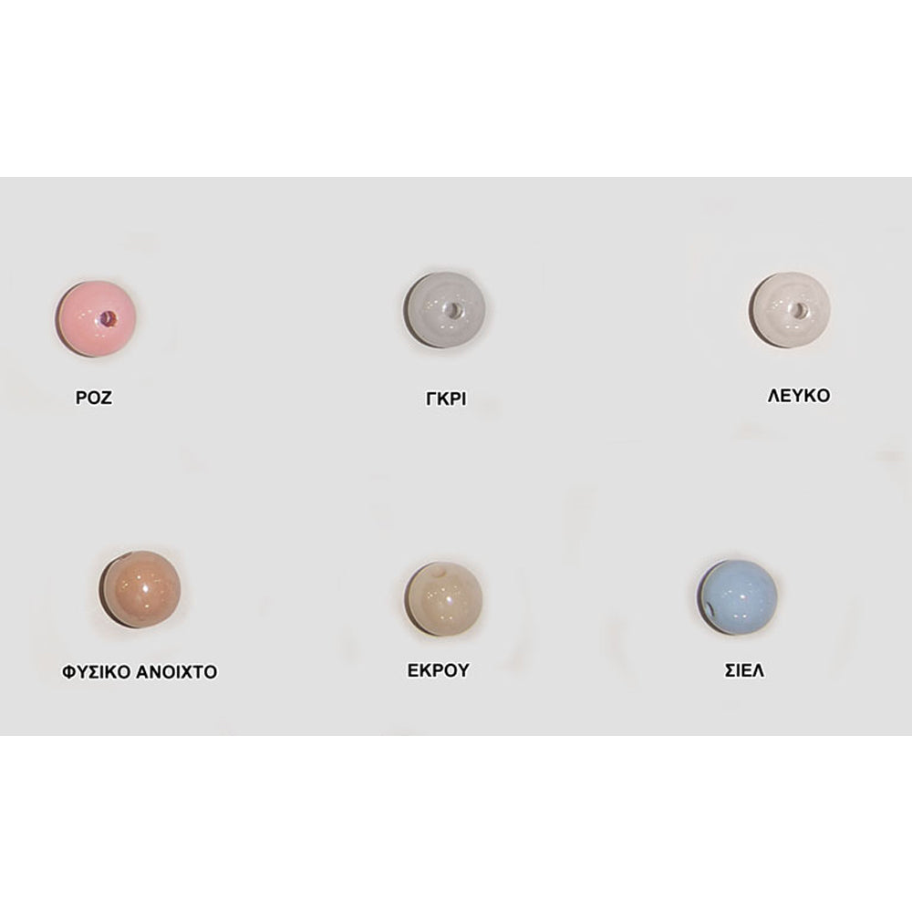 Χάντρα στρογγυλή  Γυαλιστερή Περλέ σε άσπρο, γκρι, εκρού, ροζ,,σιέλ και φυσικό ανοιχτό χρώμα. Η χάντρα έχει διάσταση 14mm και η διάσταση της τρύπας είναι 2,8mm.