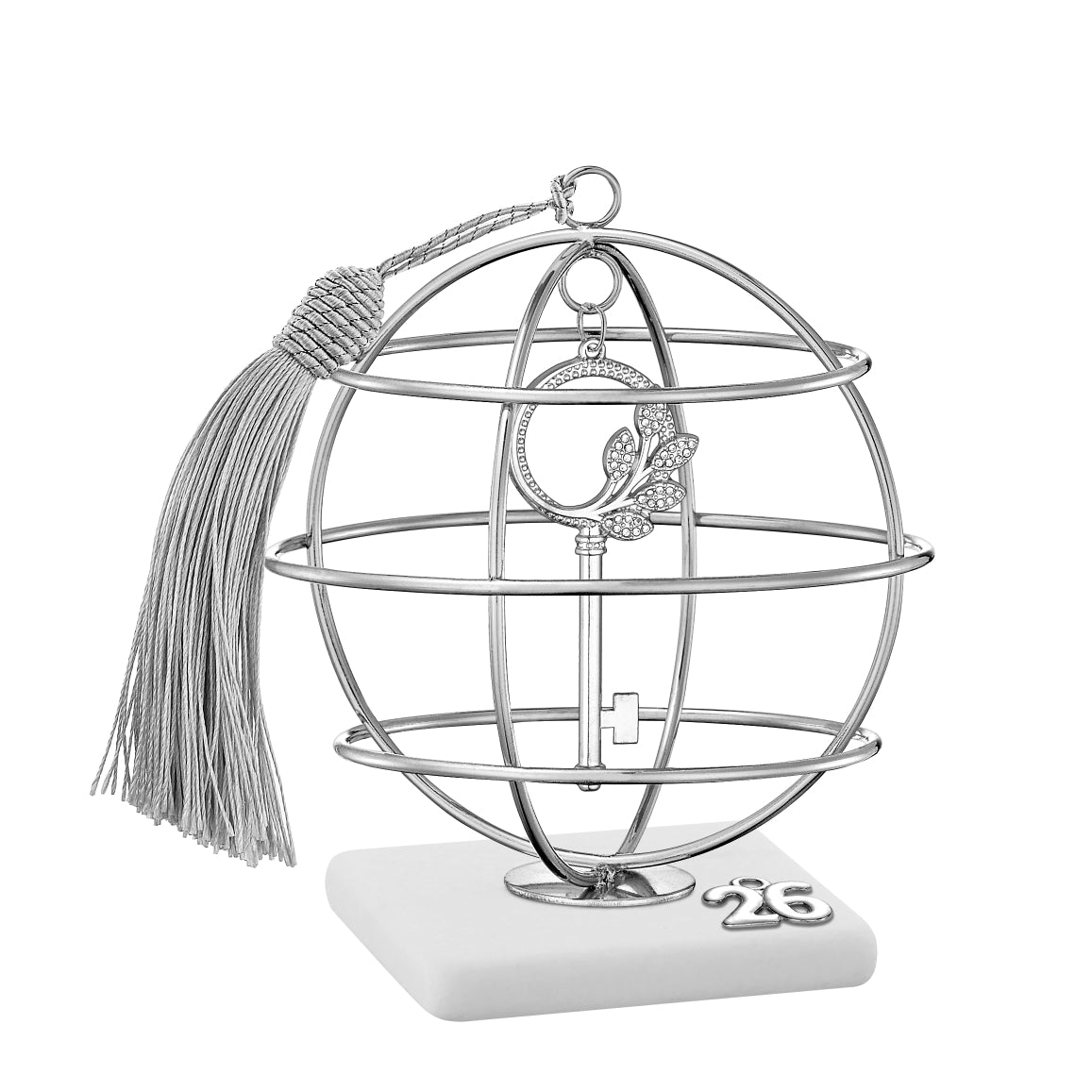Χειροποίητο Επιτραπέζιο Γούρι 2026 σε εντυπωσιακή σφαίρα με Κλειδί με στρας ασημί για άνοιγμα ευκαιριών, τύχη και νέα ξεκινήματα. Ιδανικό δώρο για σπίτι ή επαγγελματικό χώρο.