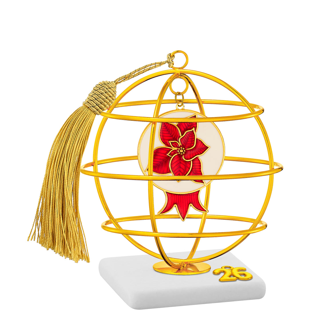 Γούρι 2026 Ρόδι με Αλεξανδρινό σε Χρυσή Σφαίρα & Φούντα- Χειροποίητο Διακοσμητικό Υ13εκ.