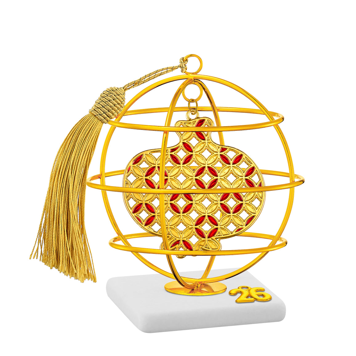 Γούρι 2026 Ρόδι με μοτίβα διάτρητο σε Χρυσή Σφαίρα & Φούντα- Χειροποίητο Διακοσμητικό Υ13εκ.