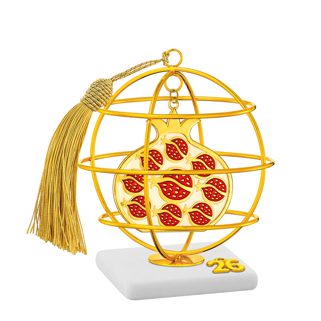 Γούρι 2026 Ρόδι με ρόδια σε Χρυσή Σφαίρα & Φούντα- Χειροποίητο Διακοσμητικό Υ13εκ.