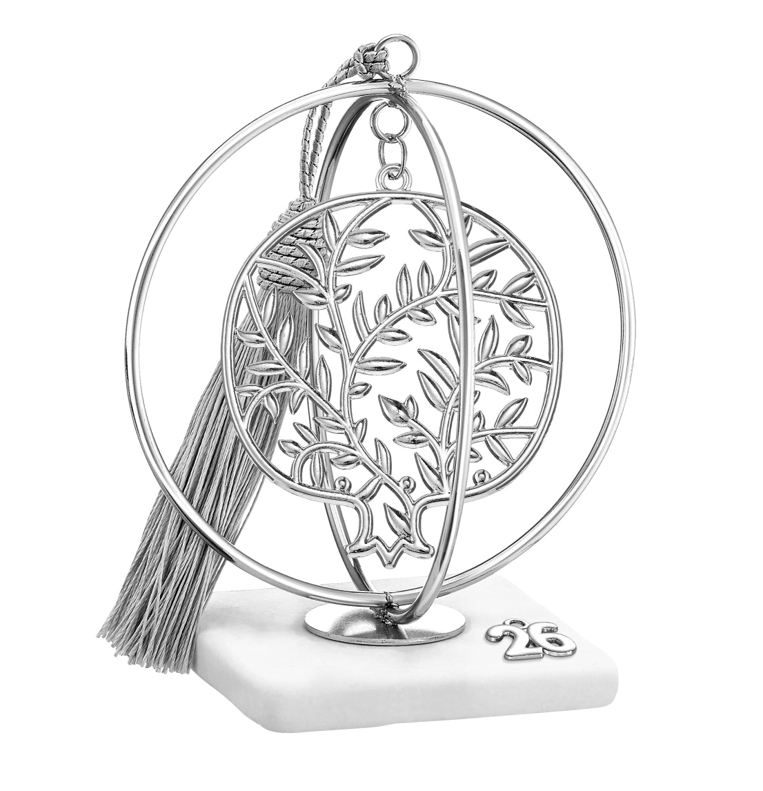 Γούρι 2026 Ρόδι με κλαδιά σε Μεταλλική Σφαίρα ασημί – Μαρμάρινη Βάση & Φούντα Υ13εκ.