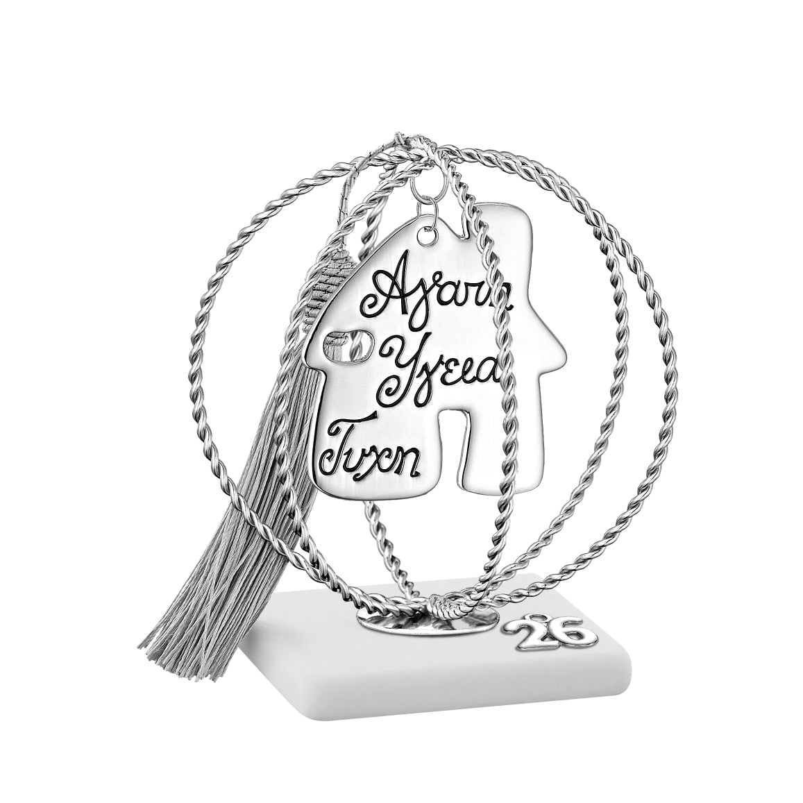 Γούρι 2026 Σπιτάκι με ευχές σε Μαρμάρινη Βάση ασημί Πλεξούδες & Φούντα Y13εκ.