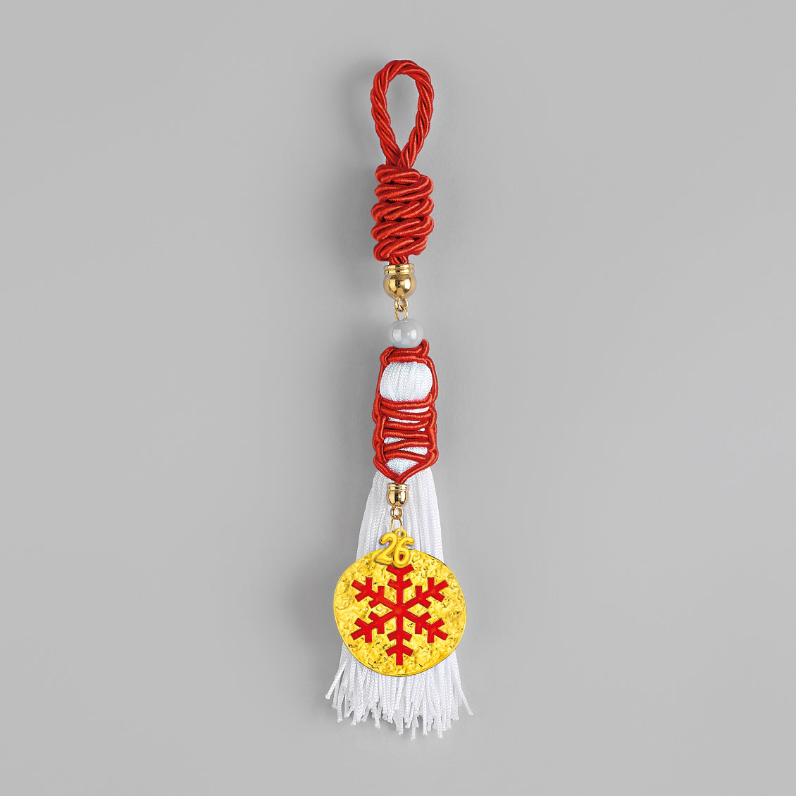 Χειροποίητο γούρι 2026 Κρεμαστό  με Χιονονιφάδα & Λευκή Φούντα. Ιδανικό εταιρικό δώρο για πελάτες, συνεργάτες και προσωπικό. Ένα προσιτό δώρο που χαρίζει τύχη και θετική ενέργεια για τη νέα χρονιά. Περίπου Υ18εκ.