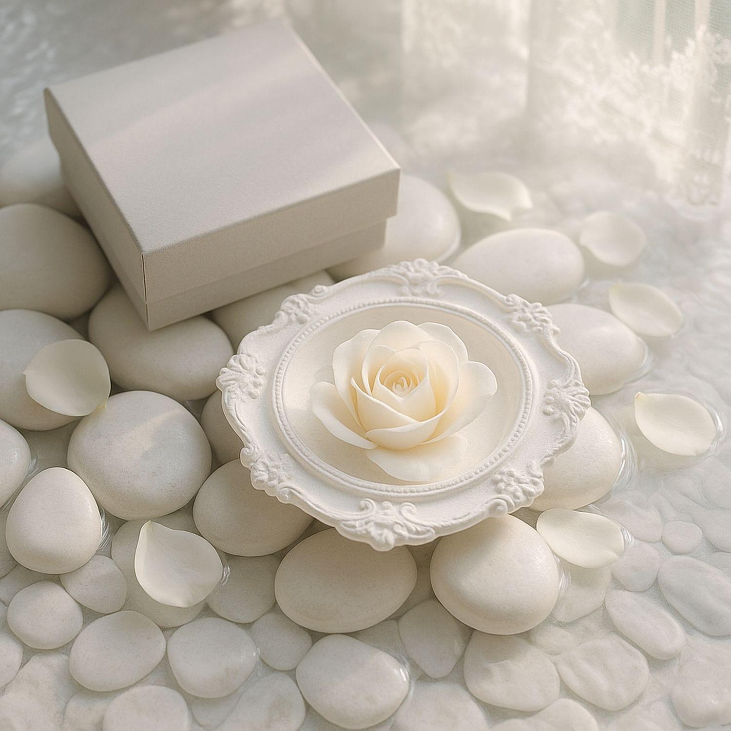 Το σκαλιστό vintage πιατάκι, το υπέροχο τριαντάφυλλο και η  elegant συσκευασία αποτελεί την καλύτερη επιλογή μπομπονιέρας που θα μαγνητίσει τα βλέμματα!