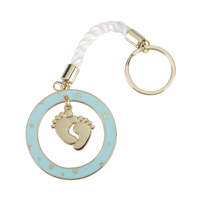 Πατουσάκια σε Γαλάζιο Κύκλο Μπρελόκ για Μπομπονιέρα Βάπτισης 17εκ.