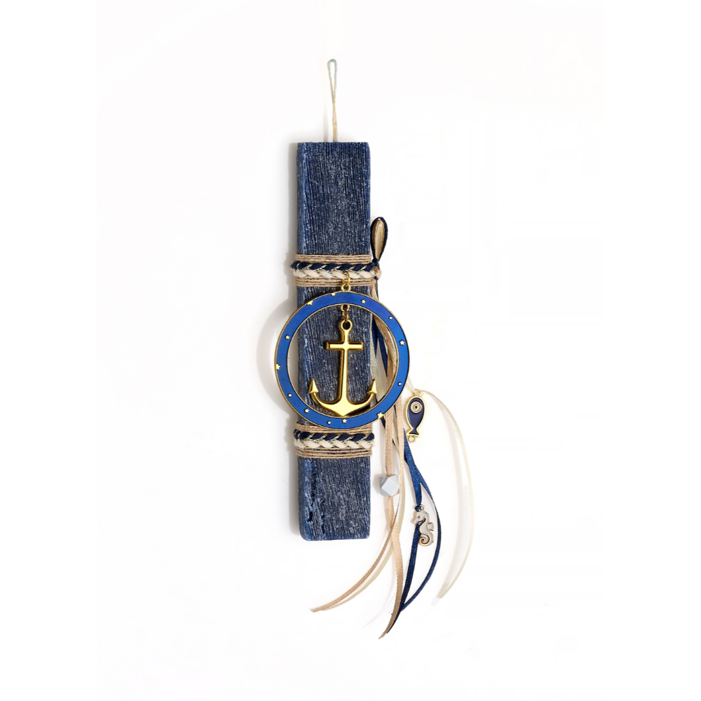 Πασχαλινή χειροποίητη αρωματική λαμπάδα, πλακέ, με Μεταλλική Άγκυρα, κατάλληλη για ενήλικες 20εκ.