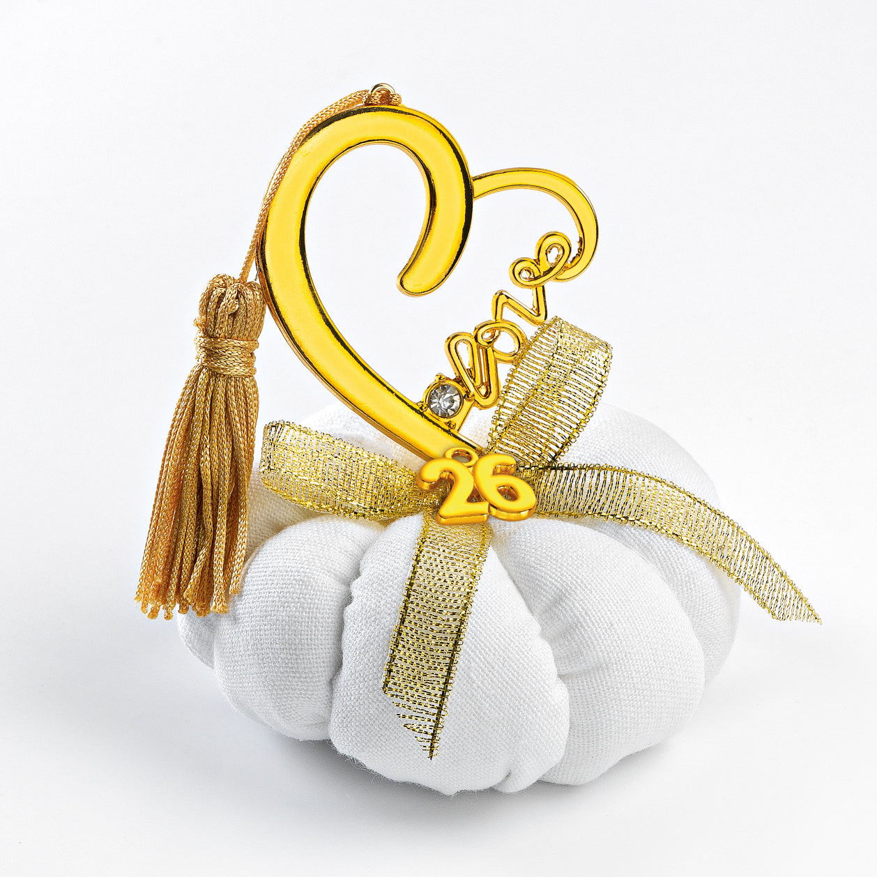 Χειροποίητη Κολοκύθα υφασμάτινη Γούρι 2026 με μεταλλική Καρδιά με Στρας, σε Χρυσό χρώμα και φούντα περίπου Δ9εκ.