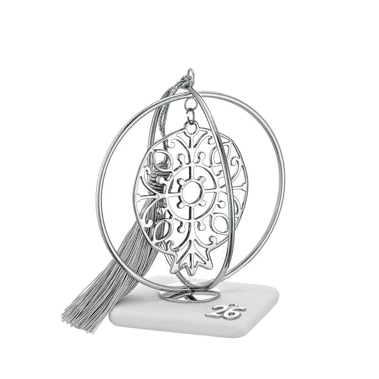 Χειροποίητο Επιτραπέζιο Γούρι 2026 σε φυσικό Μάρμαρο 7x7x1εκ με μεταλλικό χρυσό Τ. Κλουβί 10X12εκ & μεταλλικό Ρόδι ασημένιο Μάνταλα 6,5Χ8εκ και φούντα. Συνολικό ύψος περίπου Υ13εκ.